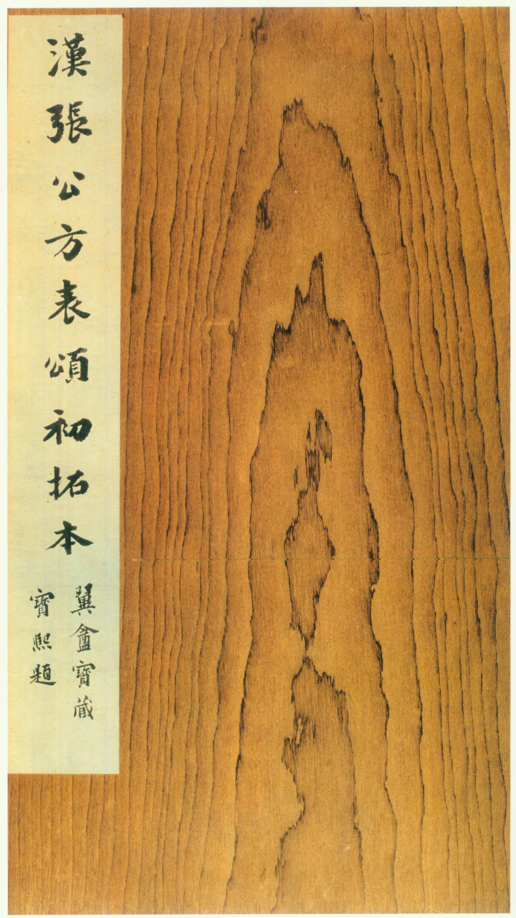 碑主人张迁,字公方,陈留己吾(今河南宁陵境内)人,曾任城(今河南洛阳市西北)长,迁荡阴(今河南汤阴县)令。故吏韦萌等为追念其功德,刊石立表以纪之。碑阴三列,上两列各19行,下列3行,刻有捐钱人题名和钱数。碑阳隶书15行,满行42字,共567字,字径3.5厘米。碑阴刻立碑官吏41人衔名及出资钱数,共3列41行323字,隶书,字径3.5厘米。额篆书“汉故谷城长荡阴令张君表颂”,2行12字,字径9.5厘米。书体意在篆隶之间又能有意曲屈,似汉印之缪篆。12字分两行而无列,布局紧密大小错落,浑然一体,或挪让、或盘曲、或长短、刚健有力,实为额中之妙品。