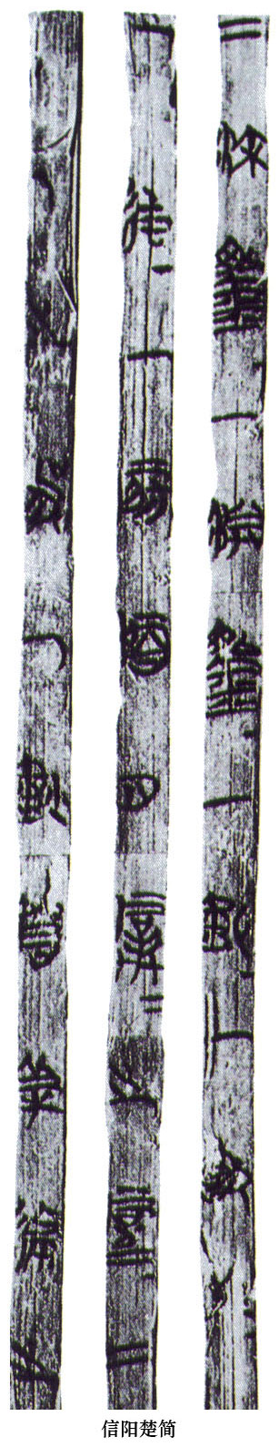 简牍在晋以前,是主要的书写载体,它的出土,汉以来就时有所闻,但无一件保留至今。19世纪末以来,在我国西北地区又陆续出土了大量简牍。目前发现的春秋战国简牍,主要有两类:楚地简牍和秦地简牍。楚简牍主要有:曾侯乙墓竹简(1978年湖北随县出土)、长沙楚简(1951、1953、1954年长沙出土)、信阳楚简(1957年出土)、江陵楚简(1965、1973、1978年江陵出土)、包山楚简(1987年湖北荆门包山出土)等。