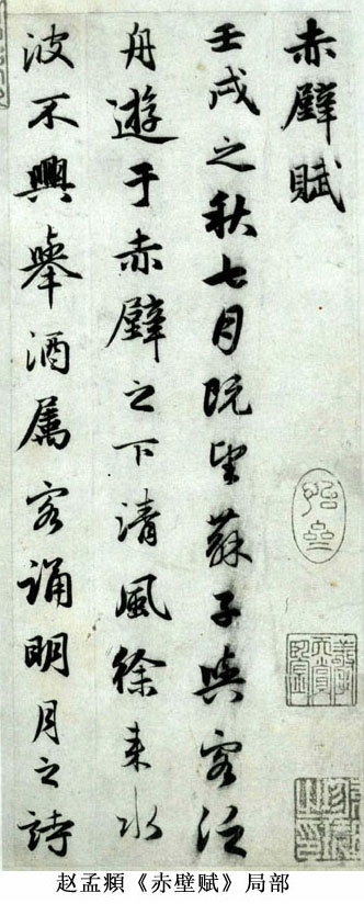 赵孟頫的行草书数量也非常多,如《与山世源绝交书》、《丈人帖》、《赤壁赋》等等。其行书追踪晋唐,以王羲之为宗,尤其得力于《集王圣教序》,深得其风流妍妙、清新峻健之致,历来学王,推为第一。