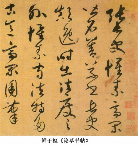 《论草书》,其笔法主要渊源于唐代怀素、张旭等人,用笔不斤斤于点划的精到而追求挥洒的豪放自由,故气势酣畅淋漓。