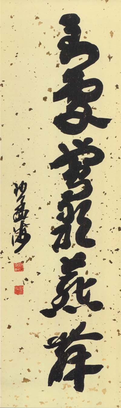 沙孟海《章草到处莺歌燕舞轴》 102×34cm 1975年 释文:到处莺歌燕舞 款署:沙孟海。 钤印:沙文若玺(白文)、孟海(白文) 【资料来源】《沙孟海书法精品选暨纪念沙孟海诞辰115周年》(天津人民美术出版社)