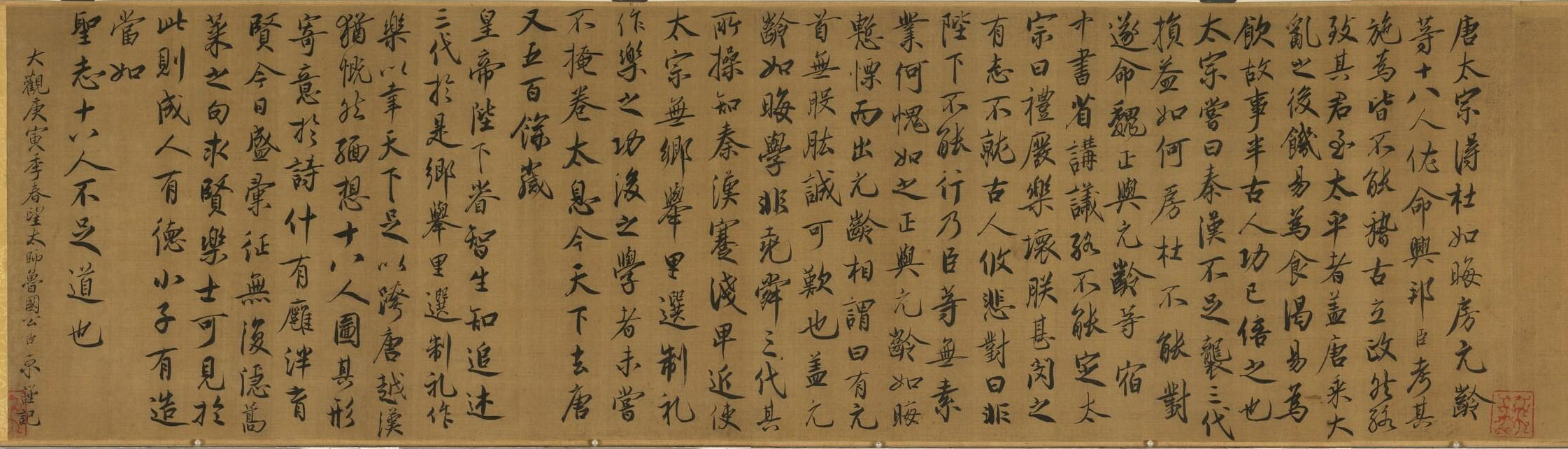 蔡京《跋宋徽宗唐十八学士图卷》绢本 纵29.4cm 台北故宫博物院藏