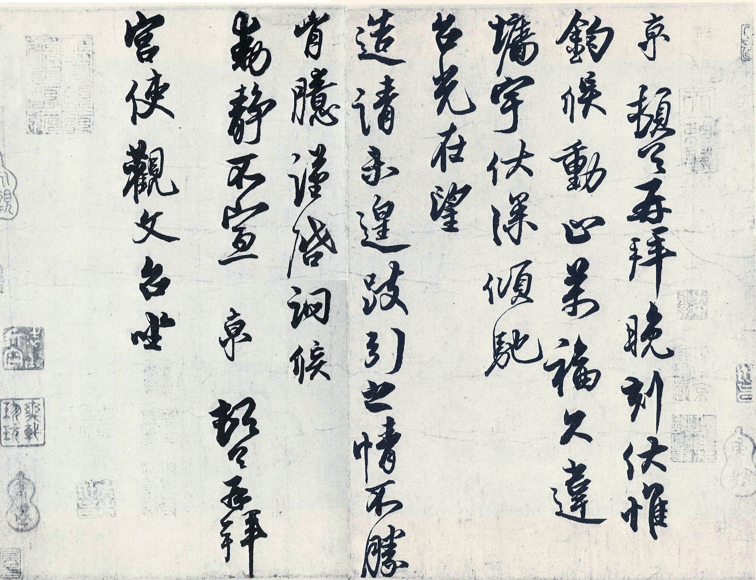 释文: 京顿首再拜。晚刻伏惟 钧候。动止万福。久违 墙宇。伏深倾驰。 台光在望。 造请未遑。跂引之情。不胜 胸臆。谨启诇候 动静不宣。京顿首再拜。 宫使观文台坐。 资料参考:台北故宫博物院网站 故-書-000239-00015