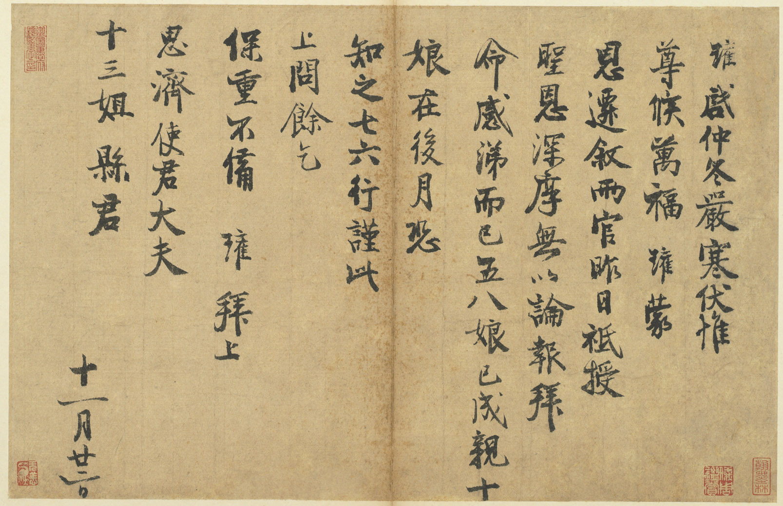 陈瓘 尺牍 《仲冬严寒帖》又称《致思济使君大夫十三姐县君尺牍》。