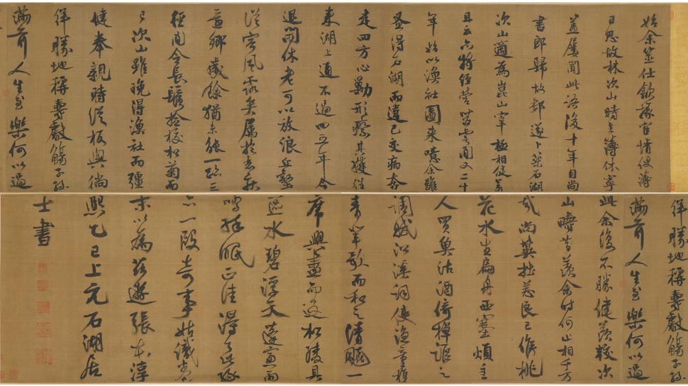范成大 《西塞渔社图卷跋》绢本 行书 40.7×280cm 美国纽约大都会博物馆藏