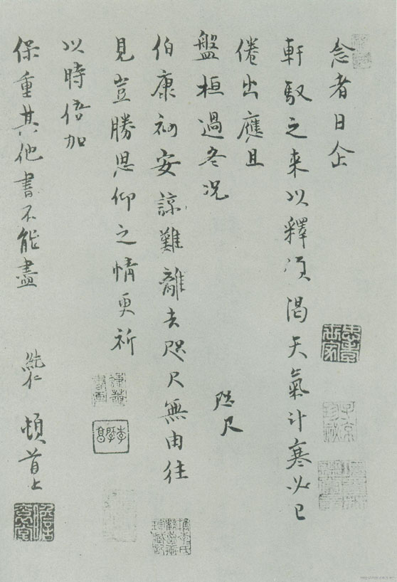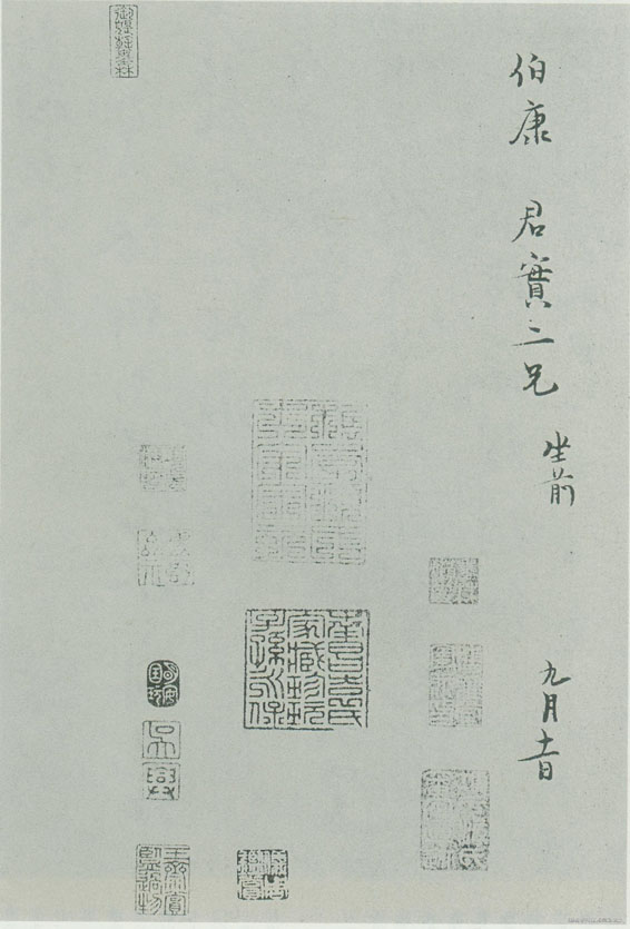 ……念者 日企轩驭之来 以释烦渴 天气计寒 必已倦出 应且盘桓过冬 况伯康初安 谅难离去咫尺 无由往见 岂胜思仰之情 更祈以时 倍加保重 其他书不能尽 纯仁顿首 上 伯康君实二兄坐前 九月十一日(念者之前四行,见司马光《通鉴稿》中,已为司马光涂抹)