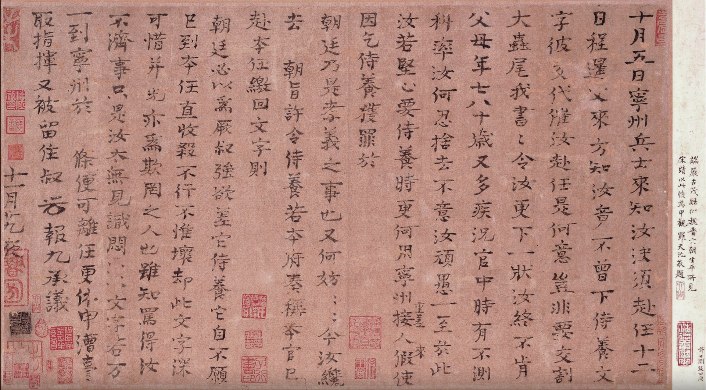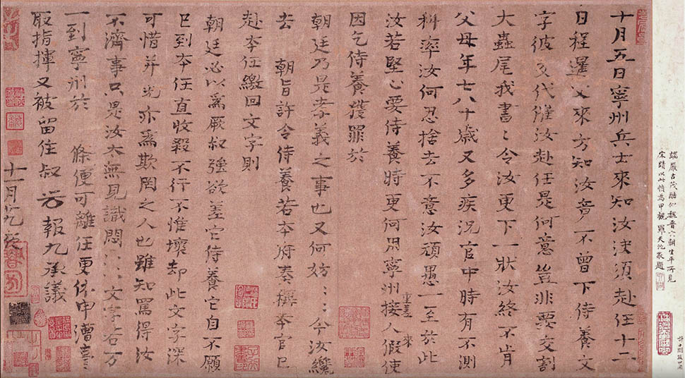 此帖为司马光答复其侄子司马富的手札,司马富执意去离家较远的宁州(今甘肃宁县)做官,司马光批评他不为父母着想,把体弱多病的司马旦夫妇丢在老家夏县(今山西夏县),司马光嘱其辞官归里,侍养尊亲。