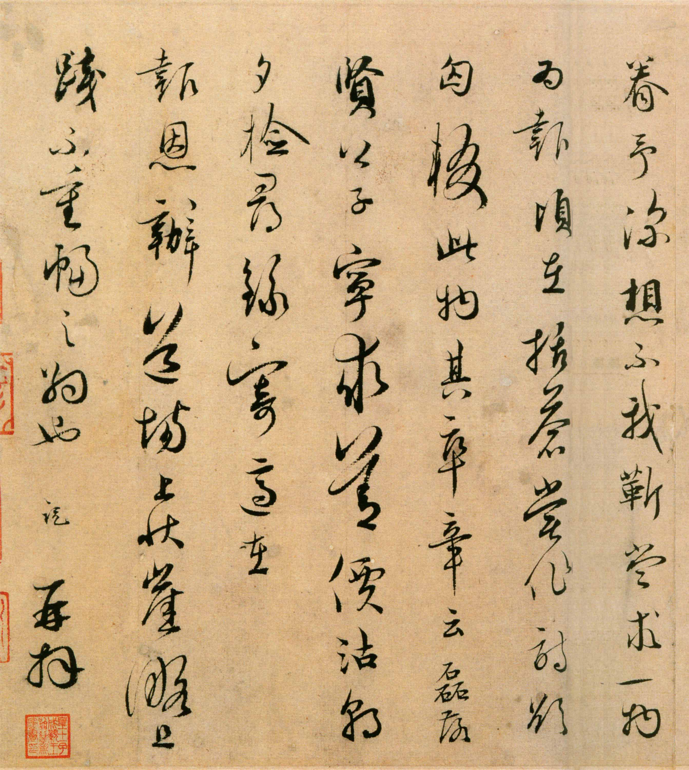 此帖率意而书,无拘无束,笔法劲利清瘦,刚中有柔,笔致有兰亭雅态,技巧性很强,布势如五代杨凝式《韭花帖》,可见吴说的功力不浅,刻意求新。清安岐《墨缘汇观》云:“行草书14行,用笔清健,兼有游丝法。”