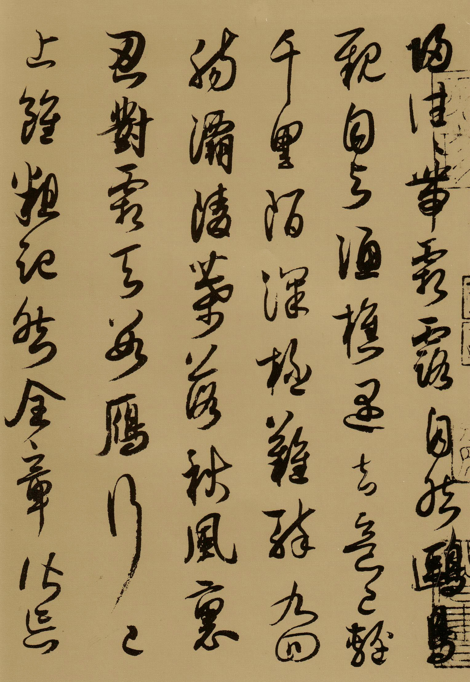 吴中自衡山翁后。绝无喜蓄书画者。顷岁幸赖元美宪使精于鉴赏。收购渐广。又幸借观无所爱。每每自庆。如翠微词翰。尤所希见者。而获见之。益加自庆焉。其诗笔字法之(缺字)。何容復置啄耶。隆池山樵彭年题。妙。