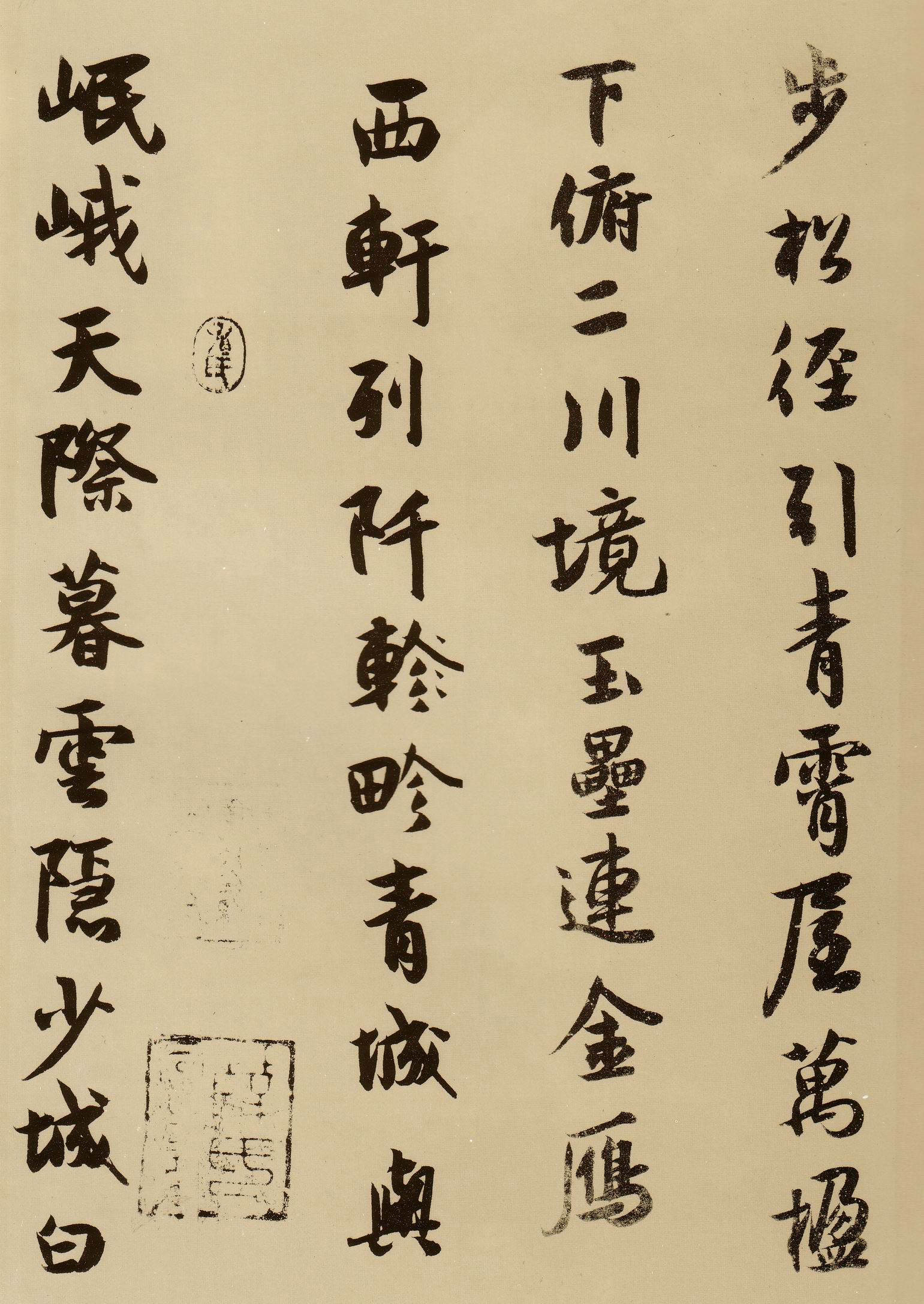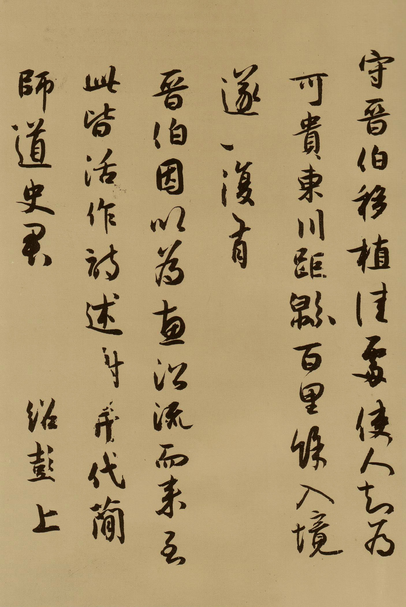 释文:云顶山诗。山压众峰首,寺占紫云顶。西游金泉来,登山缓归轸。昨暮下三学,出谷已延颈。山名高剑外,回首陋前岭。躋攀困难到。赖此昼亦永。巍巍石城出。步步松径引。青霄屋万楹。下俯二川境。玉垒连金雁。西轩列阡。軫。畛。青城与岷峨。天际暮云隐。少城白烟里。水墨淡微影。江流一练带。不復辨渔艇。东惭梓潼隘。右憙锦川迥。盘脱陁石不转。枯桒弄芒颖。四更月未出。蕙帐天风紧。客行弊帤垢。到此凡虑屏。暂时方外游。聊愜素心静。明朝武江路。拘窘逐炎景。建中靖国元年。七月二十四日。翠微居士题。上清连年。实享清适。绝尘物外。皆自製亭名也。录示诗句。未见佳处。想难逃老鉴也。旧稿不存。尚可记忆。雨不湿行径。云犹依故山。看云醒醉眼。乘月棹回舟。水上三更月。烟中一叶舟。寒临重阁迥。影带乱山流。暮烟秦树暗。落日渭川明。平林暎日疎。野草经寒短。霜乾叶飘零。石出水清浅。官冷繫怀非吏事。地偏相访定闲人。一马春风过微雨。竹閒归路静无尘。鸥鷺惊飞起。秋风菱荇花。一径入中渚。坐来唯鸟啼。水云生四面。常恐世人迷。绿径无行跡。苍苔露未晞。曾梦春塘题碧草。偶来雾夕看红蕖。无人云闭户。深夜月為灯。晓露凝芜径。斜阳满画桥。不眠听竹雨。高卧枕风湍。桥横云壑连朝度。雨暗灯窗半夜棋。微波拂凉吹。淡烟生远树。天寒湘水秋。雨暗苍梧暮。乘月多忘归。往往带霜露。自然鸥鸟亲。自与渔樵遇。去意已轻千里陌。深柸难醉九回肠。灞陵叶落秋风里。忍对霜天数雁行。已上虽粗记。然全章皆忘矣。语固未佳。要之亦平生经心一事。老友必怜其散落。便风早以為寄也。绍彭再拜。更有第三编。亦不见。来信不言及。必不在彼。不知失去何处。如何如何。左绵山中多青松。风俗贱之。止供樵爨之用。郡斋。不。僧剎。不见一本。余过而太息。辄讽通守晋伯移植佳处。使人知為可贵。东川距绵百里餘。入境遂不復有。晋伯因以為惠。沿流而来。至此皆活。作诗述谢。并代简师道史君。绍彭上。越王楼下种成行。濯濯分来一苇航。偃盖可须千岁榦。封条已傲九秋霜。含风便有笙竽韵。带雨偏垂玉露光。免作爨烟茅屋。下。底。华轩自在拂云长。通泉字法出官奴。日日临池恨不如。双鲤可无轻素练。数行唯作硬黄书。乡关何处三秦路。马足经年万里餘。多谢玉华宫畔客。新诗未觉故情疎。和巨济韵。临池通泉。為如字韵牵。非寔事也。不笑不笑。