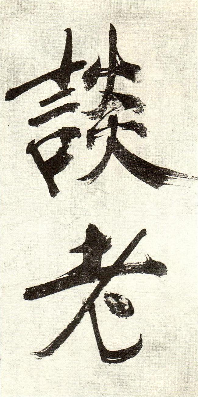 此册纸本原来似为手卷,后经割裱为册。每页两字,字大如碗,录诗一首:敛襟谈老氏,生事正当后。沧海但会意,居无东西亩。无言聊怅望,微霜欲在手。走经微朽桥,坐此岂得酒。前山未得跻,梦游杖疏柳。即之书。末钤“玉堂中人”朱文方印。