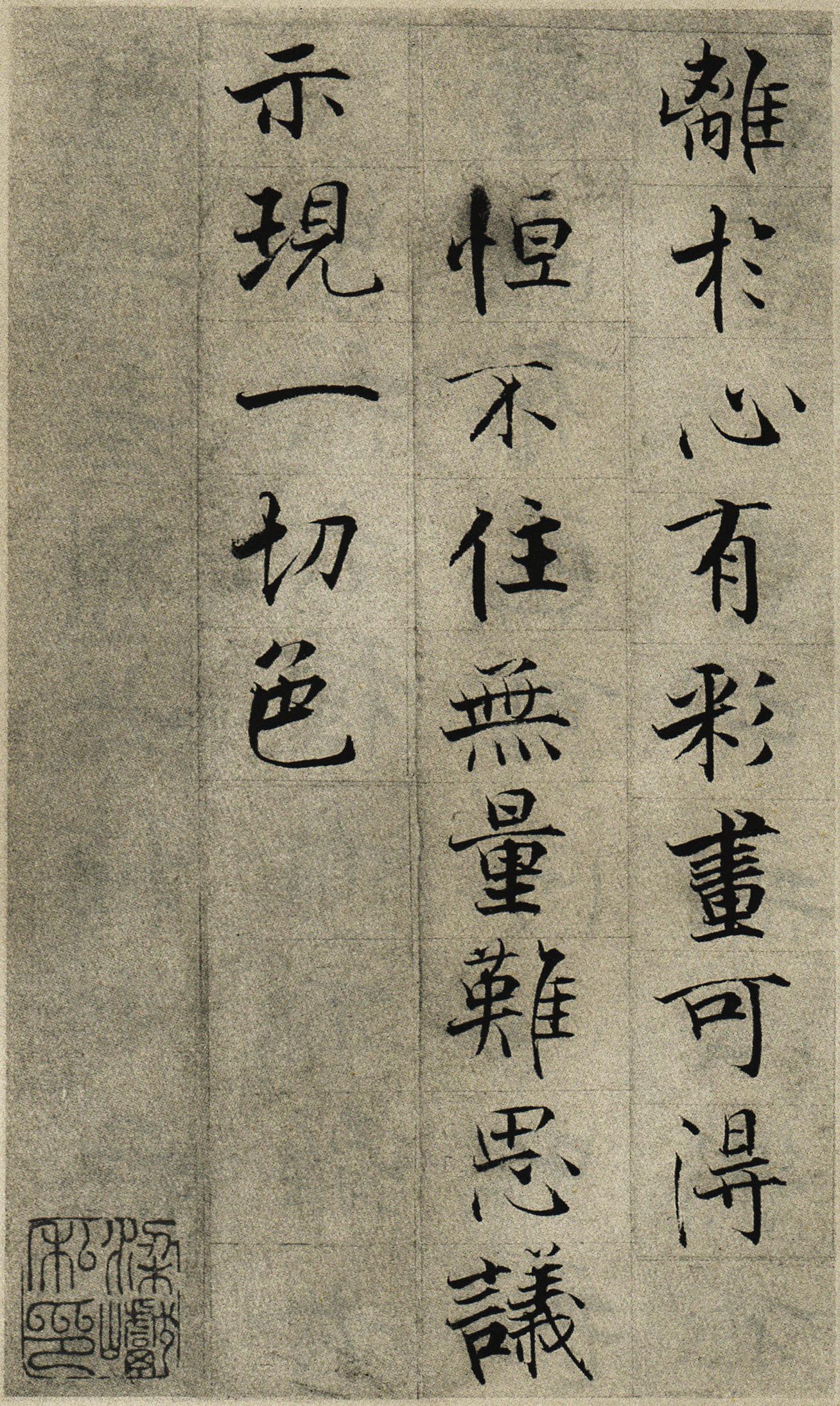 《华严经》残册,张即之书。纸本,一册六页,每页纵18.2cm、横11.7cm。共203字,无款,但有梁巘鉴藏印。