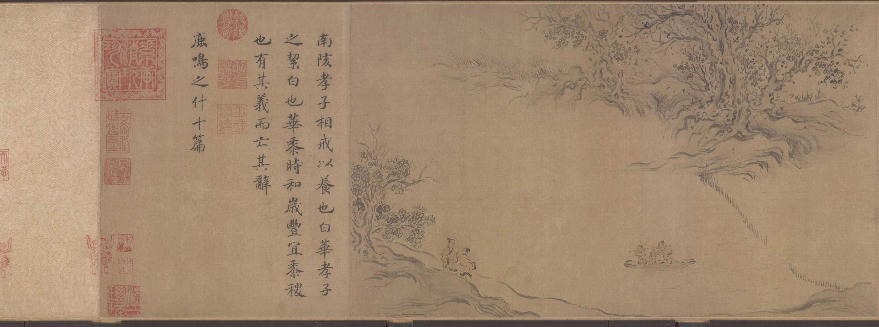 【说明】《鹿鸣之什图》卷,南宋,马和之作,绢本,设色,纵28厘米,横864厘米。