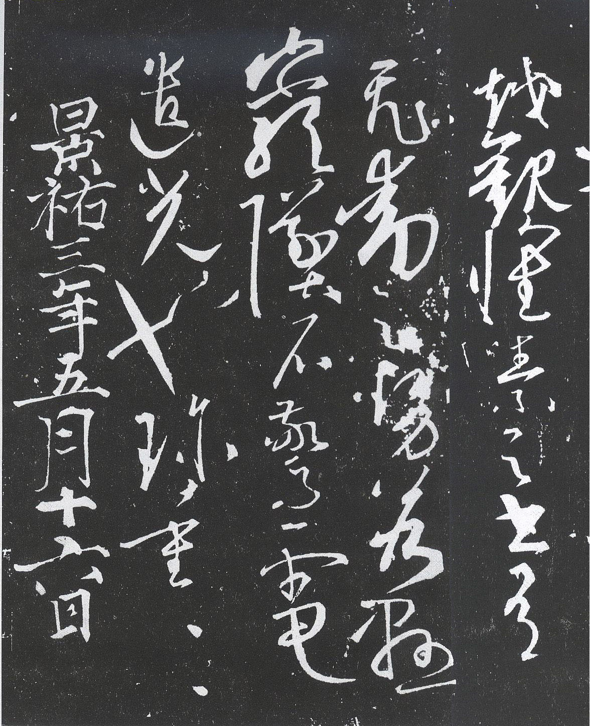 释文:越观怀素之书有飞动之势 若悬岩坠石惊电遣光也 珍重珍重 景祐三年五月十六日