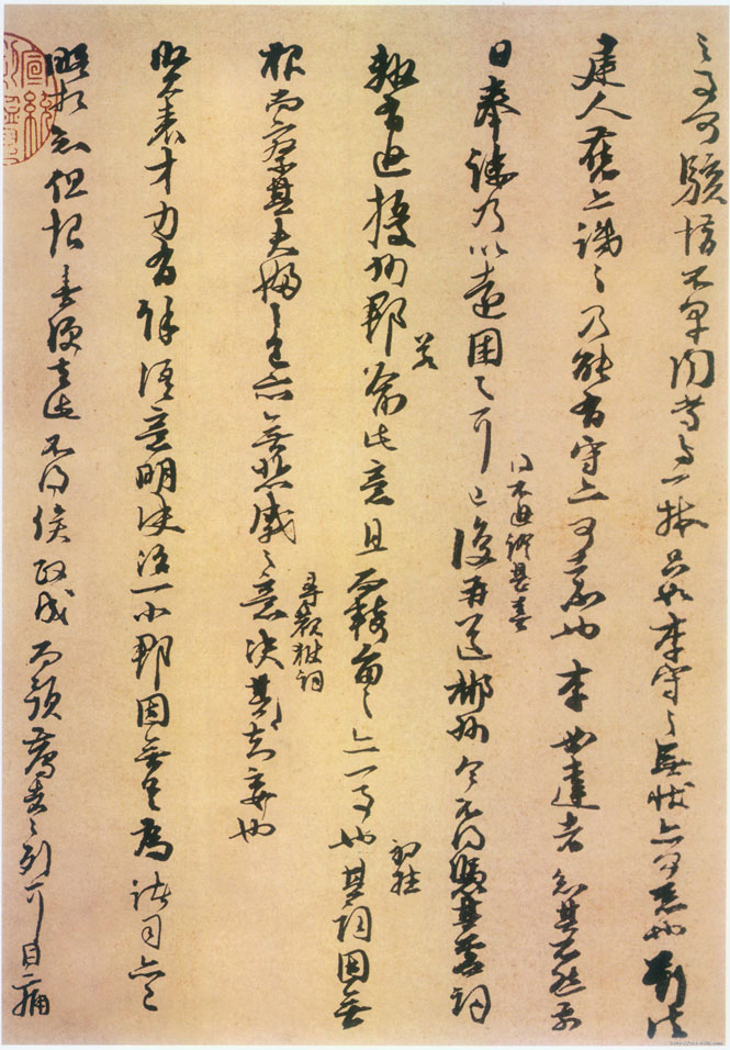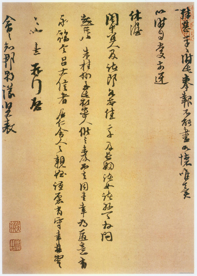 释文:八月七日熹顿首启。比两承书。冗未即报。比日秋深。凉燠未定。缅惟宣布之馀。起处佳福。熹到官三月。疾病半之。重以国家丧纪庆霈。相寻而至。忧喜交并。忽忽度日。殊无休暇。兹又忽叨收召。衰病如此。岂堪世用。然闻得是亲批出。不知谁以误听也。在官礼不敢词(词疑作辞)。已一面起发。亦已伸之祠禄。前路未报。即见归建阳俟命。昨日解印出城。且脱目前疲冗。而后日之虑无涯。无由面言。但恨垂老入此闹篮。未知作何合杀耳。本路事合理会者极多。颇已略见头绪。而未及下手。至如长沙一郡。事之合经理者尤多。皆窃有志而未及究也。来谕曲折。虽有已施行者。但今既去。谁复禀承。如寨官之属。若且在此。便当为申明省併。而补其要害不可阙处之兵。乃为久远之计。未知今日与后来之人。能复任此责否耳。学官之事可骇。惜不早闻。当与一按。只如李守之无状。亦可恶也。刘法建人。旧亦识之。乃能有守。亦可嘉也。李必达者。知其不然。前日奉诿。乃以远困之耳。得不追证甚喜。(六字旁添)。已复再送郴州。令不得凭其虚词。辄有追扰。州郡若(若字旁添)喻此意。且羁留之。亦一事也。初听(二字旁添)其词固无根。而察其夫妇之色。亦无悲戚之意。寻观狱词(四字旁添)。决知其(二字倒写)妄也。贤表才力有馀。语意明决。治一小郡。固无足为。诸司亦已略相知。但恨熹便去此。不得俟政成。而预荐者之列耳。目痛殊甚。草草附此奉报。不能尽所怀。惟冀以时自爱。前迓休渥。閤中宜人及诸郎各安佳。二子及长妇诸女诸孙。一一拜问起居。朱桂州至此。欲遣人候之。未及而去。因书幸为道意。有永福令吕大信者。居仁舍人之亲姪。谨愿有守,幸其誉之也。熹再拜启。会之知郡朝议贤表。