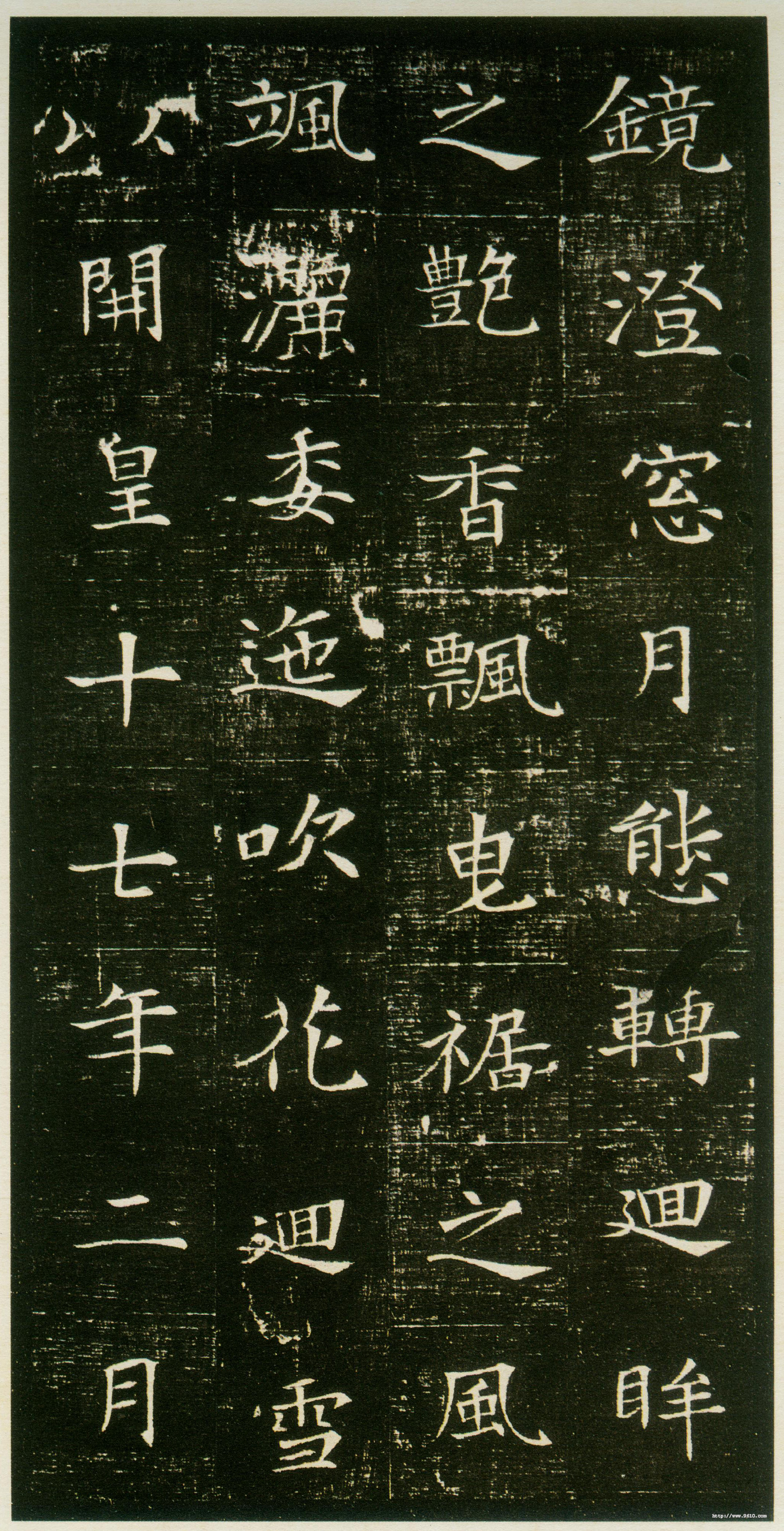 全称《美人董氏墓志铭》。隋开皇十七年(公元597年)刻,原石于清嘉庆、道光年间在陕西西安出土。为上海陆君庆官陕西兴平时所得,旋归上海徐渭仁。咸丰三年(公元1853年),上海小刀会农民起义战争期间,原石毁佚。徐氏拓本流传甚少,出土初拓本尤为难得。本站所选本分别为北京图书馆、北京大学藏本、日本三井文库、徐渭仁氏拓本。