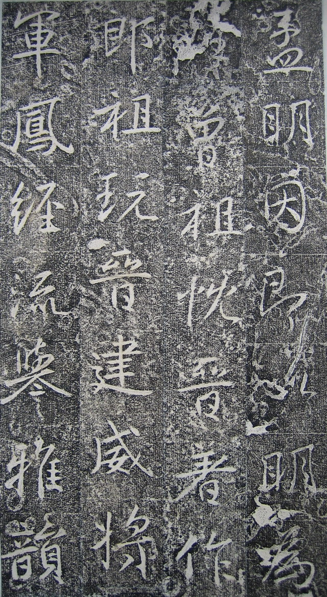 《明徵君碑》即《明僧绍碑》,矗立于南京栖霞寺前,并覆以碑亭。碑立于唐高宗上元三年( 676年),高2.74米,宽1.21米,厚0.36米。碑文为高宗(李治)所 撰,通篇四六韵文,后用十首铭词结束。高正臣书。笔法俊逸 清秀,刚柔有致。字体结构与《圣教序》仿佛,可见当时书体风格特点。碑面除碑额 王知敬篆书“明徵君碑”四字外,均为行书,共2376字,现尚存2363 字,仅缺13字。字迹清晰可辨。碑阴有“栖霞”两个大字,据传为高宗亲笔,笔力 遒劲、雄浑。这座碑历经一千多年的风雨侵蚀;尚能不失其当年光彩,堪称奇迹。在 全国现存唐碑中,是极罕见的珍品。