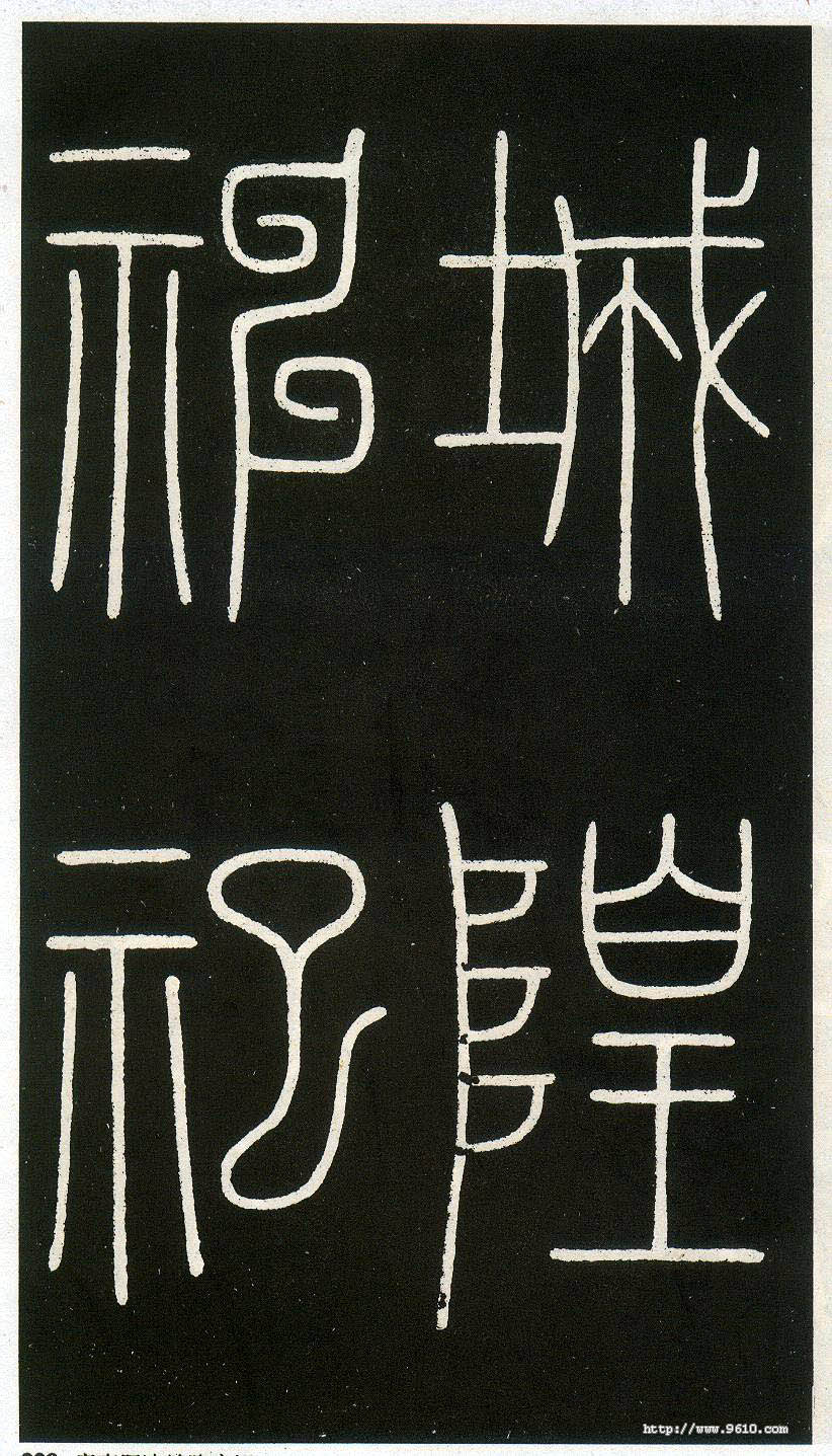 《城隍庙碑》 又称《缙云县城隍庙记碑》,唐乾元二年(759)刻,李阳冰为本县城隍祈雨有应之后撰并书。篆书8行,行16字,在浙江省缙云县。宋宣和间方腊造反,刀兵所及,碑石断裂,文字残缺。现存为宋宣和五年(1123)十月缙云县令吴延年根据搨片重刻,保存得颇为完整,惟题记下面立石人的官爵姓名缺蚀三字。此碑书法瘦劲通神,中锋行笔,结体委婉自如,与所书他碑不同,有翻刻本传世。