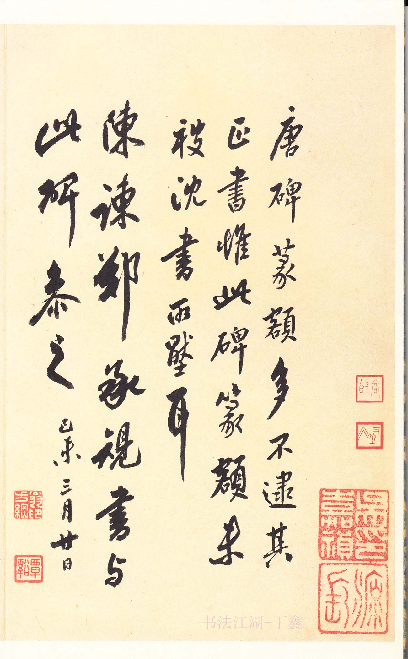 浏览此碑书法,气息清劲圆润、骨法神健,结字虽较为瘦削,然挺健秀朗,肉藏于筋,略无枯瘠之垢病。乍一看,近似柳(公权)书,但细察与柳书有着根本的区别,那就是柳书中宫过于内敛,紧缩得让人心中发慌,沈书却无此特征,虽然中宫也稍作内敛,但总体来说,还是属于较宽松的。另一个与柳书不同点即在结构上,沈氏书法结体多呈左低右高势,且略向右欹侧,当然,此碑书法也确实存在与柳氏书法相同的地方,其中竖弯钩、点、撇、捺、悬针竖等用笔和一些字的结体如“言“字旁,“诏”、“柳”、“师”、“不”等与柳书如出一辙,究竟是谁影响了谁?请看王铎跋此拓本的一句话“沈书寡觌,本虞永兴,柳诚悬、欧率更,合为一家”。如果王铎的话可信,显然沈师承了柳,然据《旧唐书》柳公权本传推测,柳(公权)小于沈传师九岁,同时,本传有一段话也耐人寻味,“公权初学王书,遍阅近代笔法,体势劲媚,自成一家”。说不定这“近代笔法”里就包括沈传师在内。如捡柳书《李晟碑》与《罗池庙碑》对照,用笔与结字即颇为仿佛。看来王铎的沈“本”柳公权是要打折扣的。黄鲁直在论唐代书法时,曾说“唐初字学劲健得晋宋风,开元后变为肥厚,元和后柳、沈之徒复尚清劲”。可见柳、沈都是力“矫肥厚之病”以尚“清劲”为美的书家,若用今天的话来说,在当时柳、沈都是极富有创新精神的书家。这样看来,柳、沈书风的相近也就不足为怪了。
