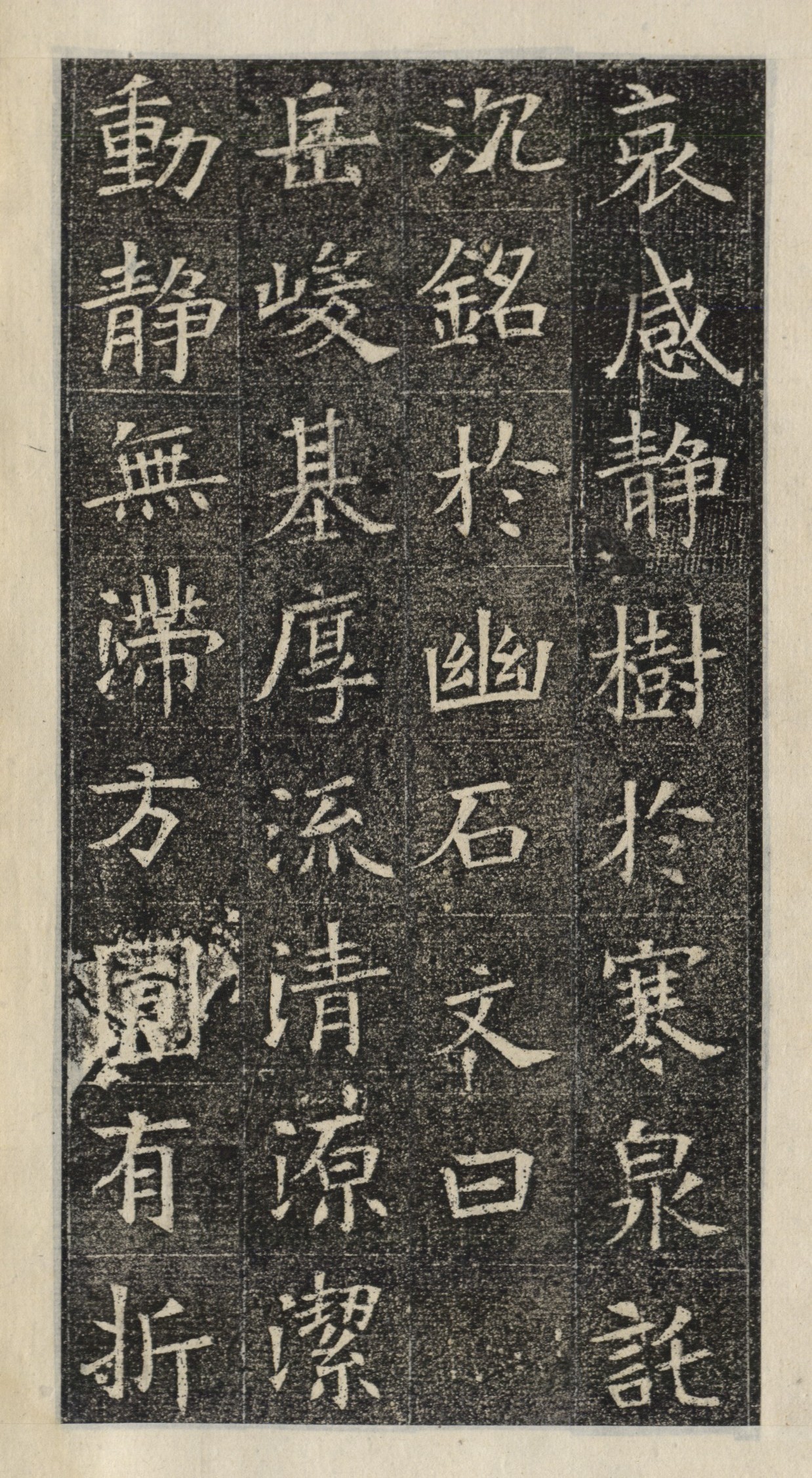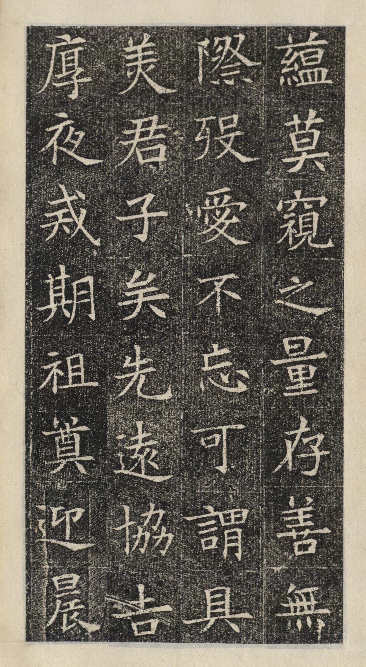 《苏慈墓志》即《苏孝慈墓志》,孝慈乃苏慈之字。隋文帝仁寿三年(603)立石,此志计三十七行,每行三十七字,于光绪十四年(1888)在陕西蒲城县出土。此石初出土拓本无跋,光绪戊子夏,知县张荣升于二十一行“日”字下刻跋二行,后此跋又为黄彭年凿去。因此石出土较晚,故字口清晰完好,细观此册楷书,点画清峻,笔意精到,字形结构匀称妍美,端庄平和,除结字略扁而稍带六朝遗意之外,与唐人楷法已十分接近,对方笔的运用已十分成熟,与《董美人墓志》亦极为相似,无疑是初学者学习楷书的优秀范本,康有为《广艺舟双楫》评此碑曰:“《苏慈碑》以光绪十三出土,初入人间,辄得盛名。以其端整妍美,足为干禄之资,而笔画完好,较屡翻之欧碑易学。于是翰林之写白折者,举子之写大卷者,人购一本,期月而纸贵洛阳,信哉其足取出。”又因此碑经刻工凿刀下石,笔意已失,锋芒过露,加上笔画又较强、容易形成康有为批评此石所说的“气势薄弱,行间亦无雄强茂密之象。”故初学者要注意在临写时要尽量恢复其自然的笔意,以免犯板滞浮薄之弊。