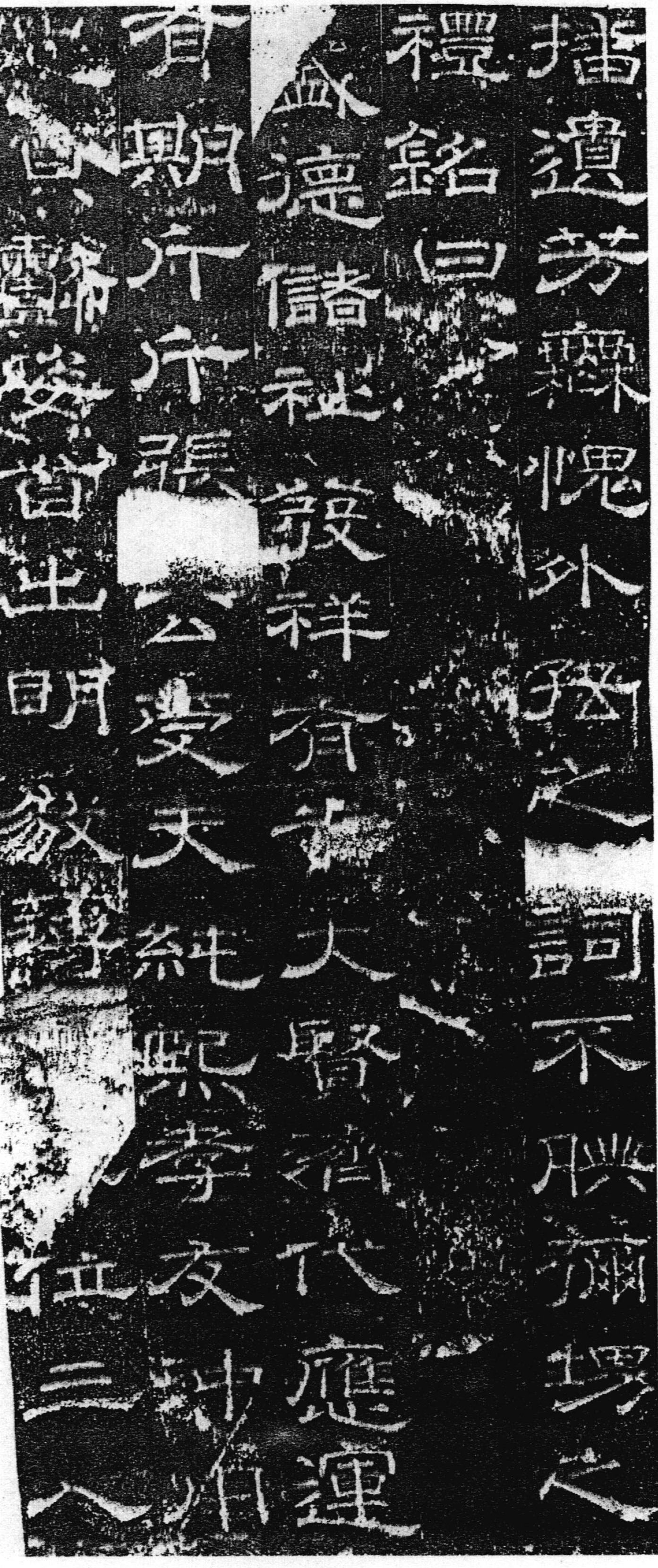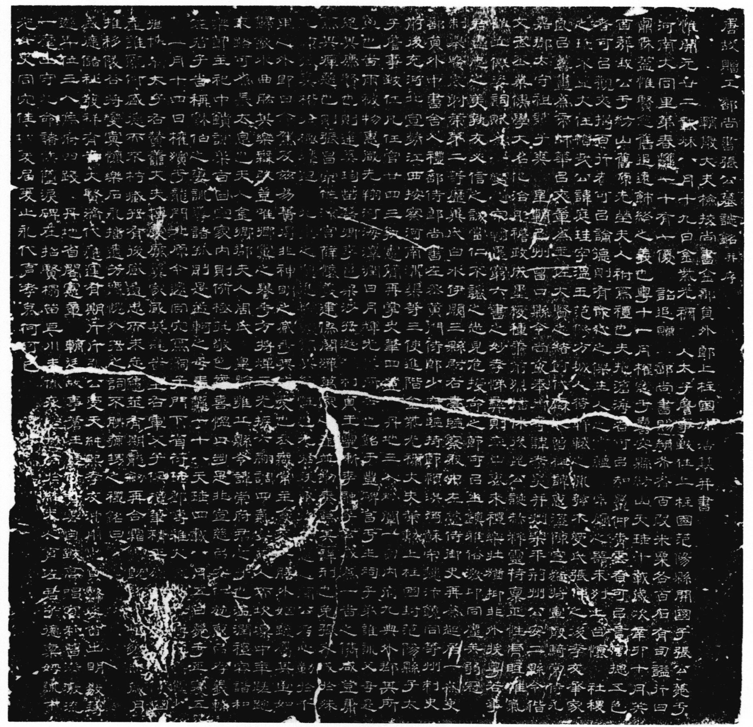 《张庭珪墓志》,全称《唐故赠工部尚书张公墓志铭》,徐浩撰并隶书,天宝十载(751年)十月入窆纺山,书写时间应在此前,有学者认为该志书于天宝五载(746年)。志形方,边长80厘米,厚16厘米,34行,行37字。共852字。四周刻有花纹图案。1977年7月民兵在河南伊川县坡头寨村修建涵洞时发现。现藏伊川县文管所。