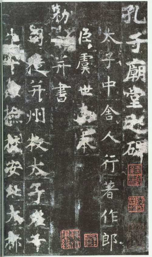 ¡¡¡¡Ëδú»ÆÍ¥¼áÓÐÊ«ÔÆ£º¡°¿×ÃíÓÝÊéÕê¹Û¿Ì£¬Ç§Á½»Æ½ðÄǹºµÃ£¿¡±¿É¼ûÔÍØ±¾ÔÚ±±ËÎÆäÕä¹ó¡£ÏÖ´æ´Ë±®µÄÁ½ÖÖÖØ¿Ì±¾£ºÒ»ÔÚÉÂÎ÷Î÷°²±®ÁÖ£¬ËγõÍõÑ峬¿Ì£¬ÊÀ³Æ¡°É±¾¡±£¬»ò¡°Î÷ÃíÌñ¾¡±£»Ò»ÔÚɽ¶«³ÇÎ䣬Ԫ´ú¿Ì£¬³Æ¡°³ÇÎä±¾¡±»ò¡°¶«ÃíÌñ¾¡±¡£Ç°Õß×ֽϷʣ¬ºóÕß½ÏÊÝ¡£ËÄÃíÌñ®£¬¼Î¾¸ÈýÊ®ËÄÄêµØÕðʱʯ¶ÏΪÈý¡£¶Ïºó³õÍØ±¾¶þÐС°ÓÝÊÀ¡±¶þ×ÖÍêºÃ¡£Ã÷ÖÐÆÚÍØ±¾Ä©ÐС°·çË®Ðû½ðʯ¡±¼¸×ÖÍêºÃ¡£