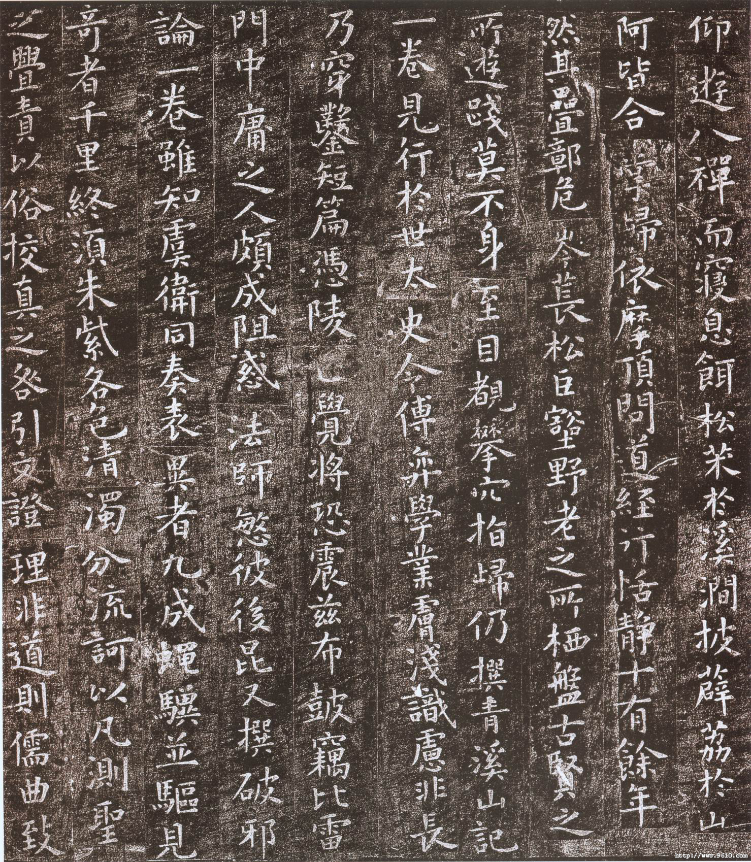 虞世南小楷书,日本三井高坚收藏,全文收入《虞秘监集》及历代书法论著中,传世刻本有款署“太子中书舍人虞世南撰并书”“太子中书舍人吴郡虞世南撰并书”二种。但此帖有人疑为伪迹,如清代学者姚鼎认为虞世南父名荔,而文中有“饵松茶干溪漳,披薜荔于山阿”之句,未将其中“荔”字缺笔避讳。然此小楷之清逸,明王世贞《弇州山人续稿》中曾这样论述,“世南书迹本自稀,而楷法尤不易得,不者唯《破邪论序》,稍大者《孔子庙堂碑》而已,《破邪》积能之极,几夺天巧,所以不入二王室,犹似不能忘情于蹊迳耳。”此帖历来转辗翻刻者不少,如《玉烟堂帖》、《停云帖》、《清鉴堂》等诸法帖,尤以《越州石氏本》为最佳。