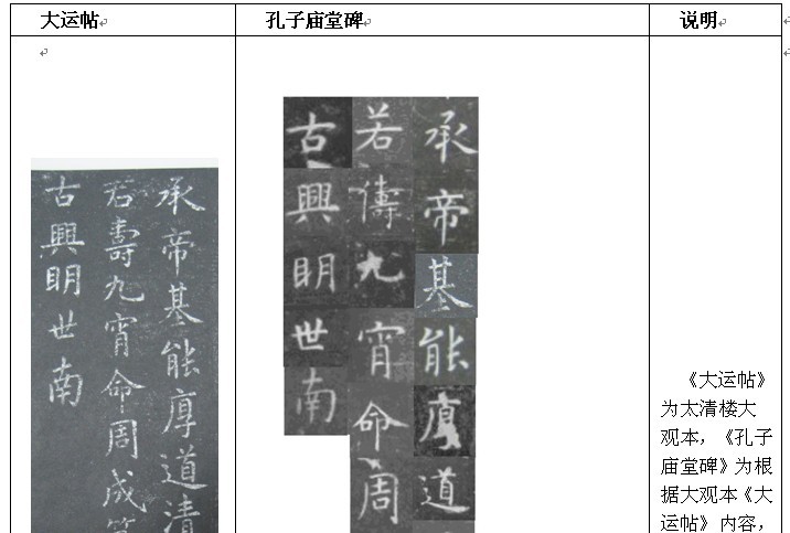 表格的对比结果表明此帖明显为集《孔子庙堂碑》而来。那么,关于帖文的真伪因无明显可靠证据,暂存疑。
