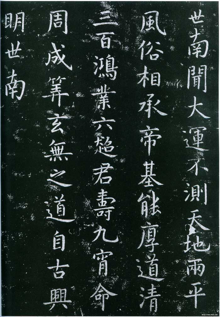 【释文】世南闻大运不测,天地两平;风俗相承,帝基能厚;道清三百,鸿业六超;君寿九宵,命周成算;玄无之道,自古兴明。世南。