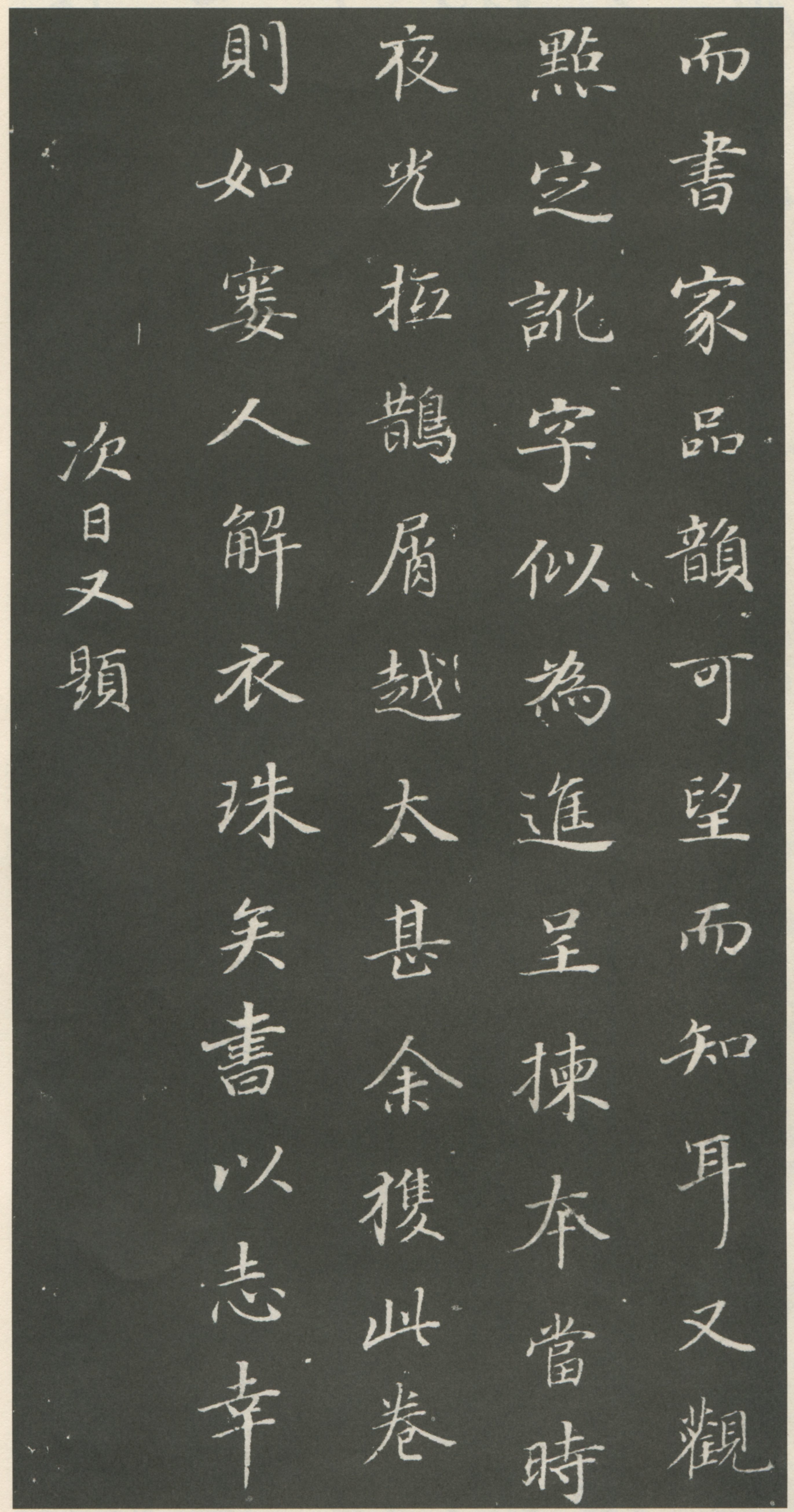 但未知何种原因,陈氏扣留的43行墨迹的末12行未被刻入帖中。由于《渤海藏真帖》本《灵飞经》刻于原卷被割裂之前,所以该帖已是最能反映原作完整原貌的刻帖。