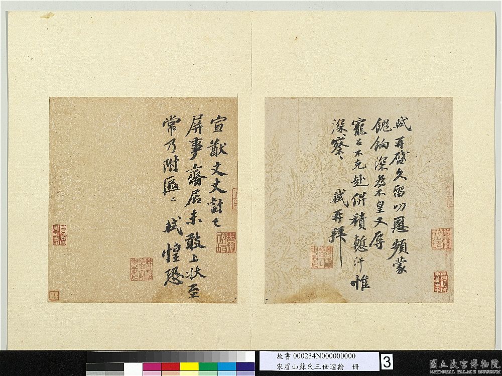 【资料参考】台北故宫博物院网站(故-書-000234-00003 宋眉山蘇氏三世遺翰 冊 宋蘇軾尺牘)