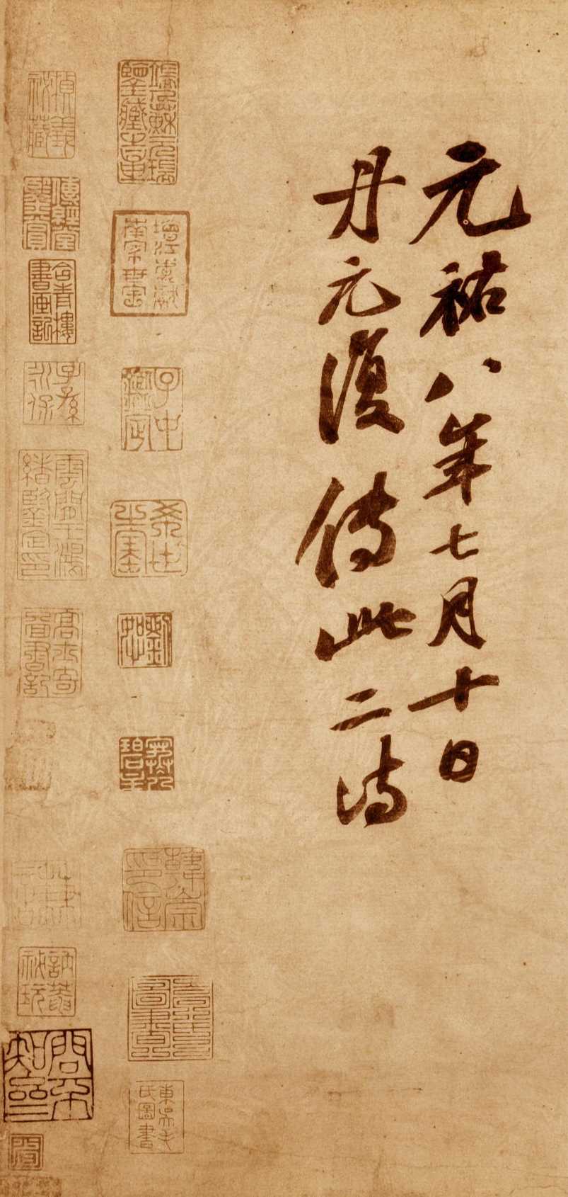 该帖为宋神宗元祐八年(公元1093年)苏轼58岁时书。清高士奇《江村销夏录》著录。后有蔡松年、施宜生、刘沂、高衍及张弼、高士奇、沈德潜等明、清人跋。此帖已流入日本。施宜生谓“颂太白此语。则人间无诗,观东坡此笔则人间无字。”此两诗为逸诗《李太白文集》所不载。
