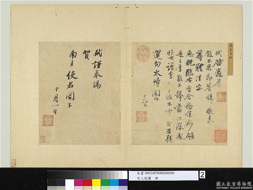 苏轼《致南圭使君帖》(左)纸本 行书 26.1×20.9cm 台北故宫博物院藏