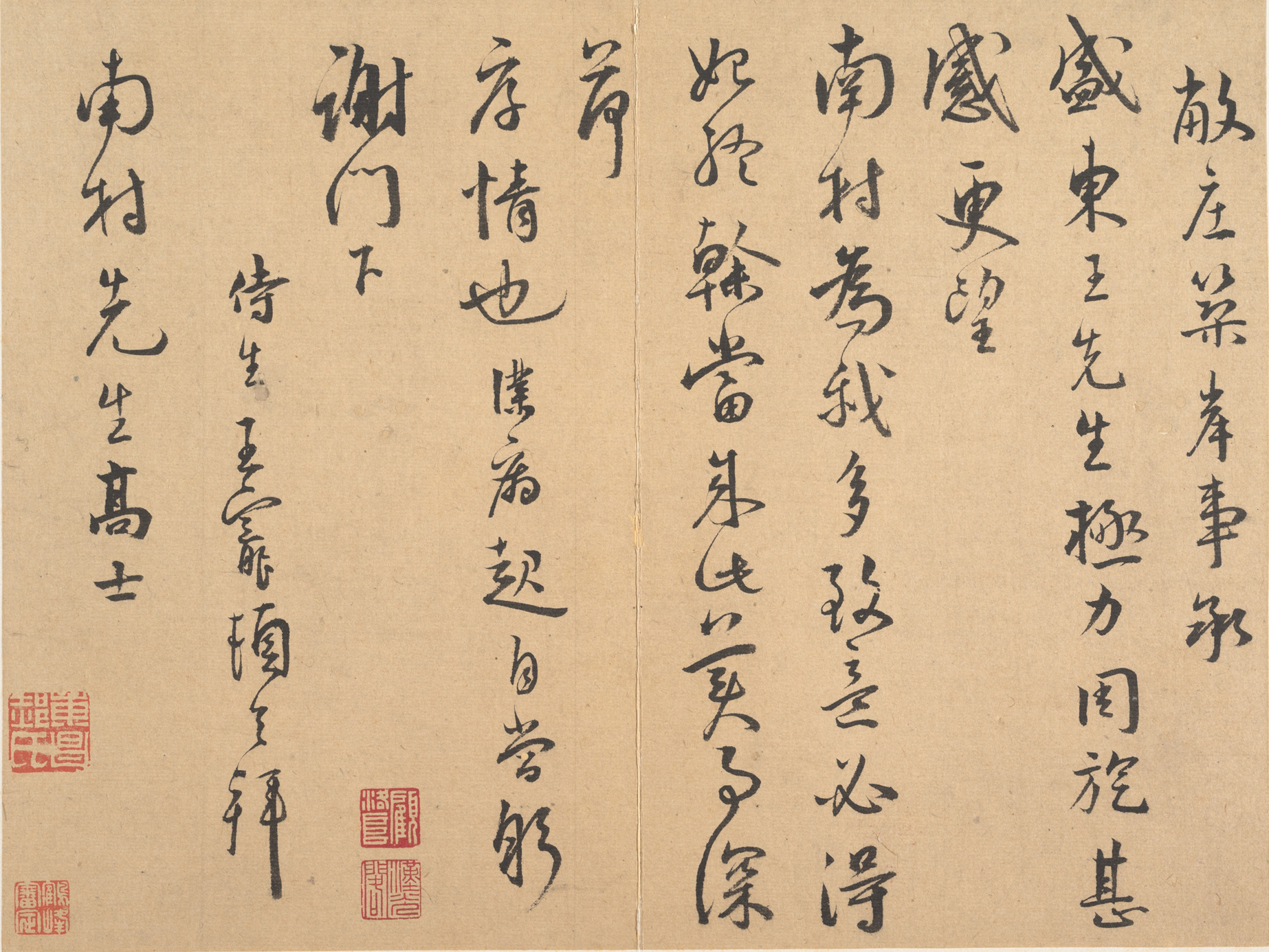王宠《致南村书》 25.7 x 34.0 cm 美国大都会博物馆藏