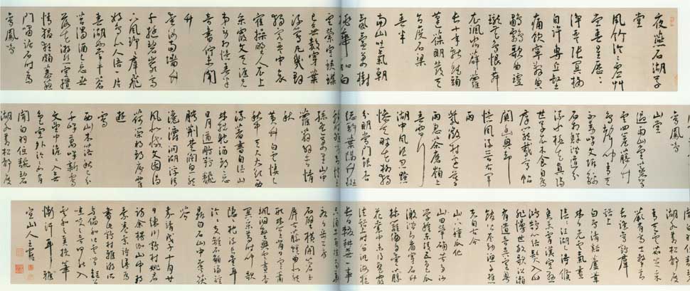 王宠《夜燕石湖草堂等诗卷》卷 纸本 行草书 31.5 × 760 cm 天津博物馆藏