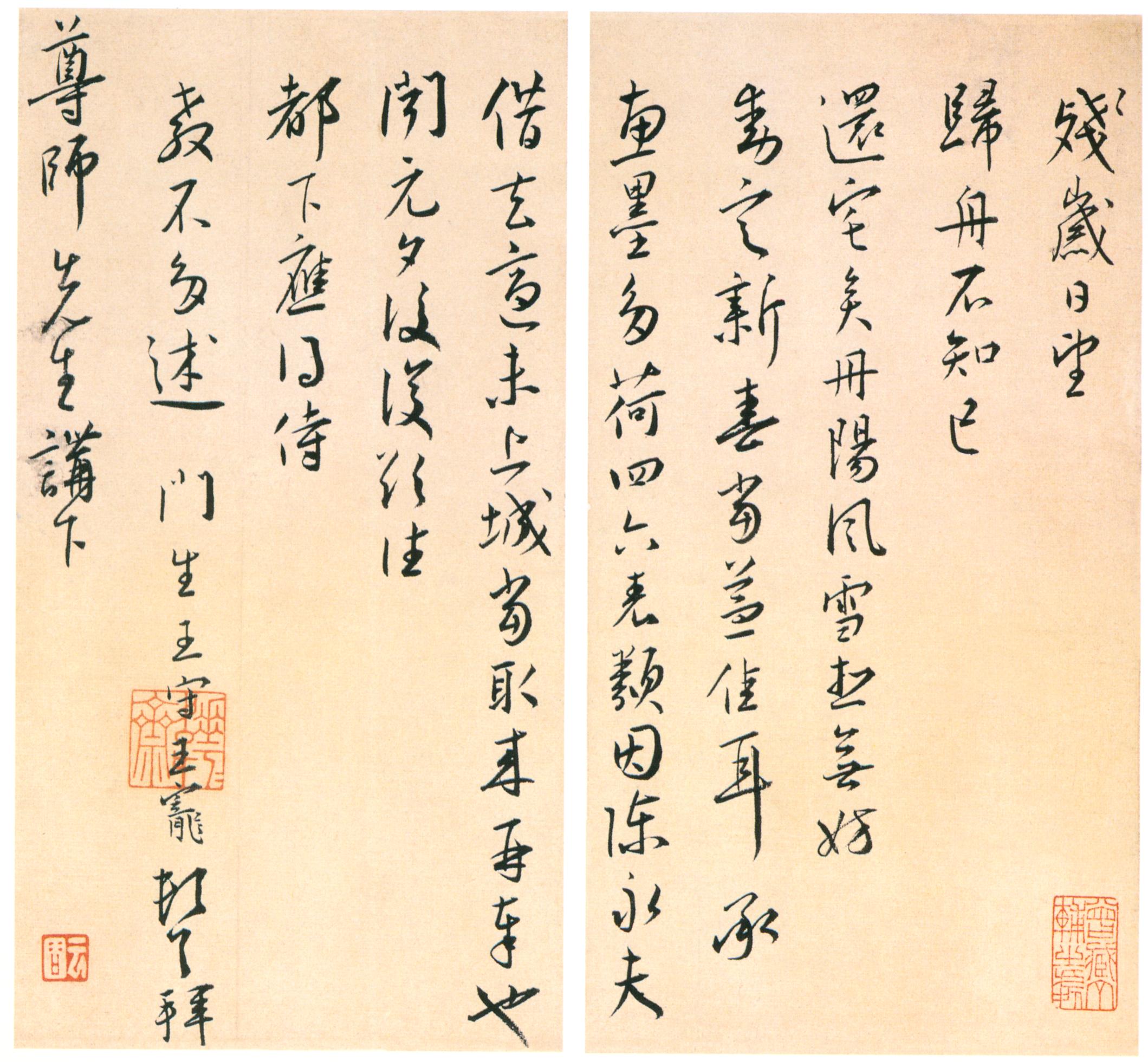 王宠《致尊师书札》页 纸本 行草书 22.7×12.2 cm×2 浙江省博物馆藏