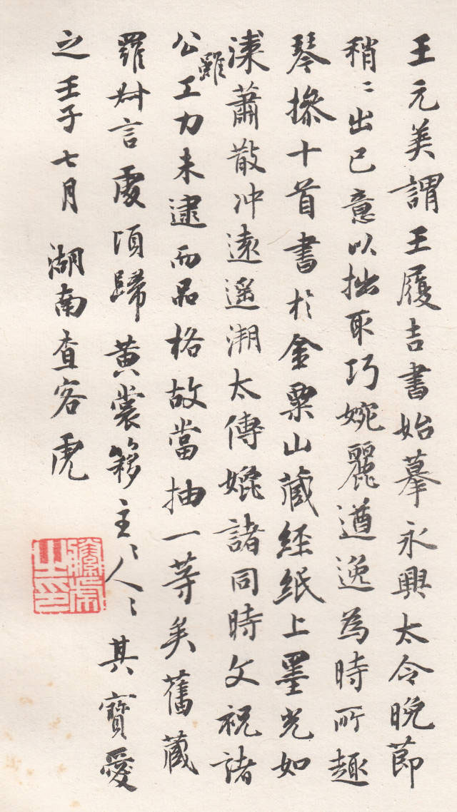 这是王宠后期一件典型的以拙取巧的作品,与《林翁蔡尊师衡山文丈偕计北征敬呈四首》、《辛巳书事诗七首》等相比,结构更为松散,不以整饬精准为鹄的,行气的调节多赖结构长短正侧之变化,时有出人意表的拗笔相杂其间,若不擅小楷者所为,与赵孟、文徵明万无一失的精确营构别一意趣。