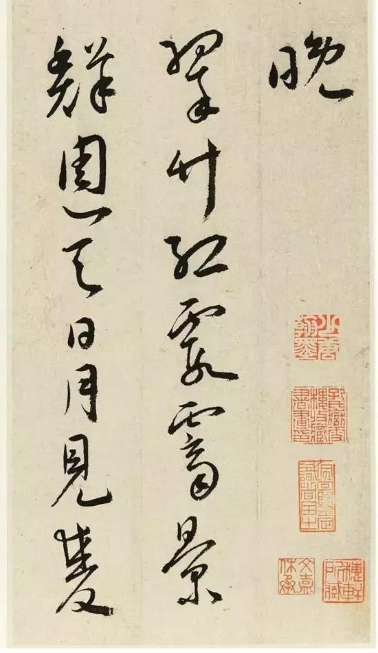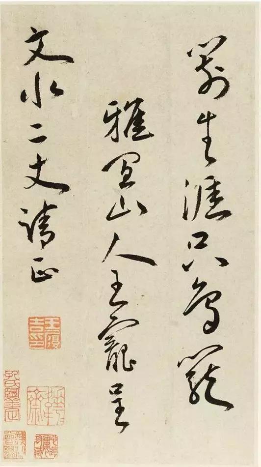 按语:此册三开,王宠为文嘉书《晚》、《晓》二诗。诗已有奇趣,书则意态古穆,逸容生姿。虽拙而秀、而巧,一种俊美婉转之势,若清溪流水,活泛在动静之间,故能沁人心脾,韵味悠远。本幅有文嘉藏印,可见其珍重。晚清时为广东名家孔广陶等所藏,是流传有绪的王氏书迹。