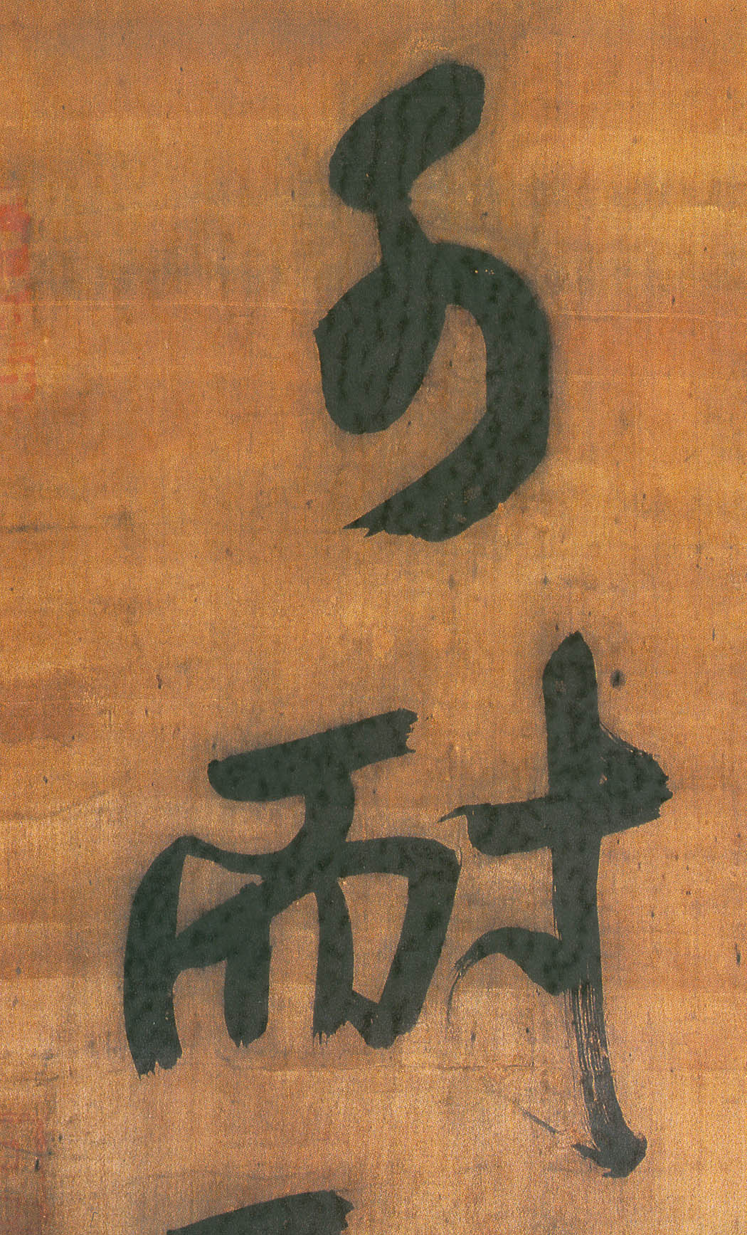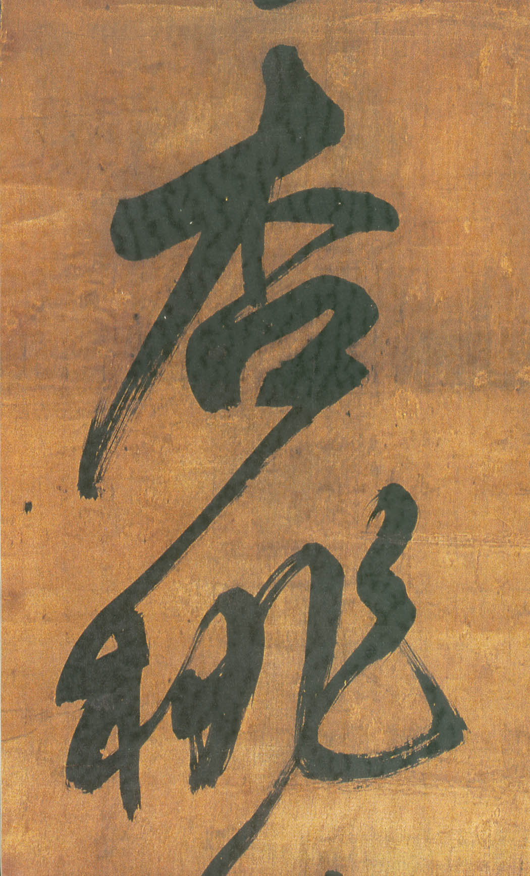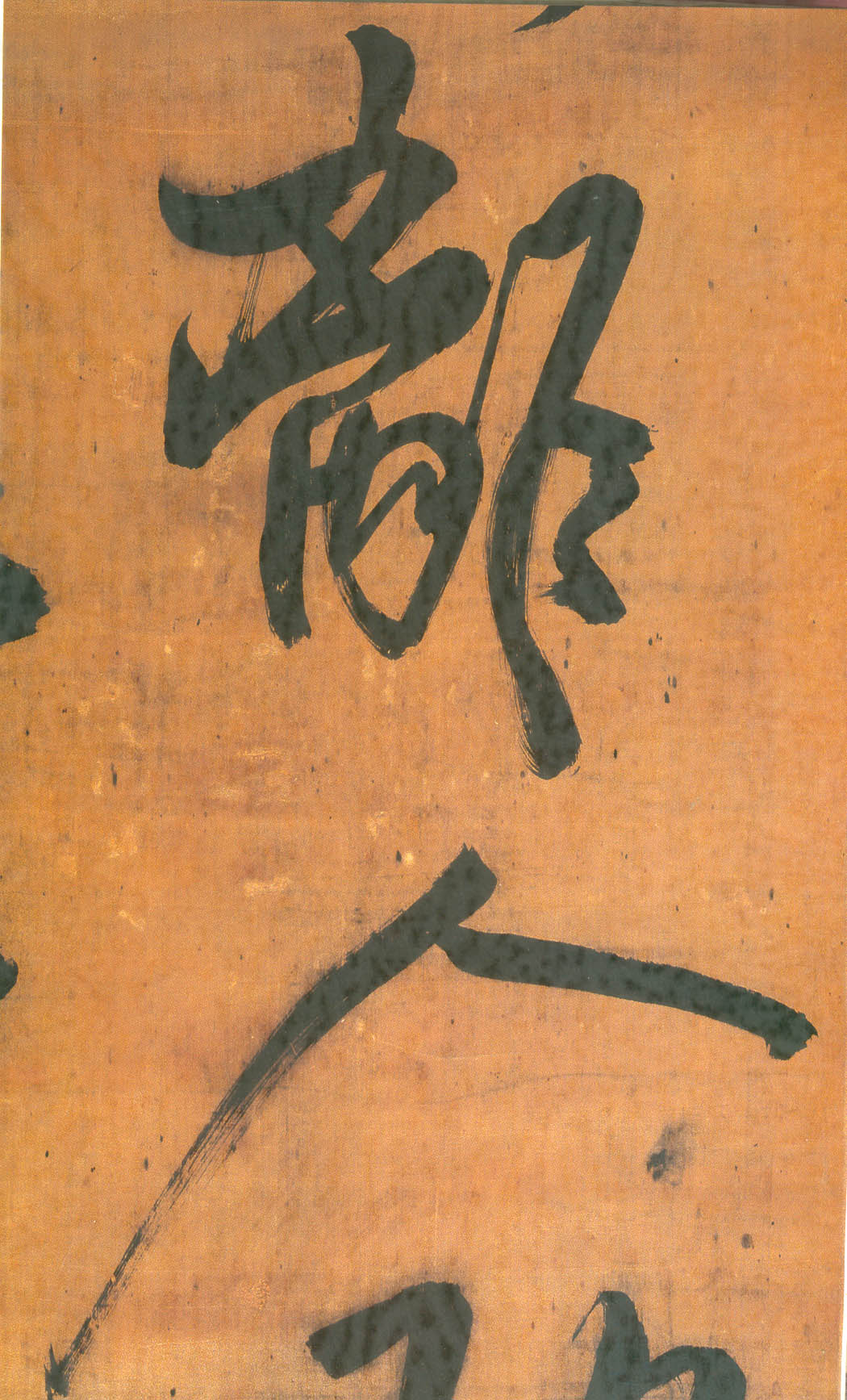 《王铎行草五言律诗轴》纵262厘米,横55厘米。绫本。为朵云轩藏品。内容为五言律诗一首,诗镜苍凉沉郁,字势纵横捭阖。以其诗文、笔意推之,约为王铎四十五岁时之作,其书风已明显转向含蓄蕴藉。像“容”、“离”、“可”、“明”等字行笔从容,着墨润泽,沉雄浑厚。如“虚亭”、“人”、“相邀”、“翔南老亲翁正”等字苍劲老辣,笔势洞圆,神完气足。该作不同于他早期全以力胜而显剑拔弩张的那类作品,整幅气息趋于静穆,躁气渐退。虽然从一些字间连带、字之结体上仍可看到“使力”的痕迹,显得不够自然,但这种书风转变时期的作品对于学习书法的人更具有参考价值。就如目睹正在蜕皮之蝉,看到了其生长变化的最关键时刻。(参考《新民晚报》2005.06.07作者:司马关中)