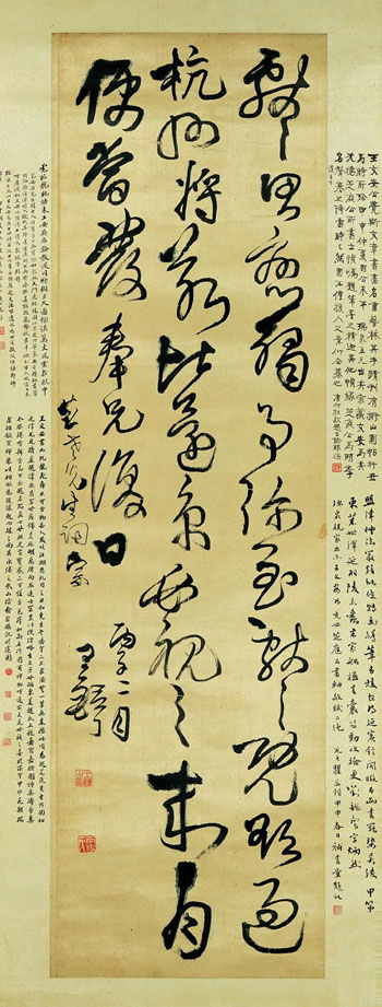 王铎《临王献之草书轴》绢本,纵169厘米,横49厘米 昆仑堂藏