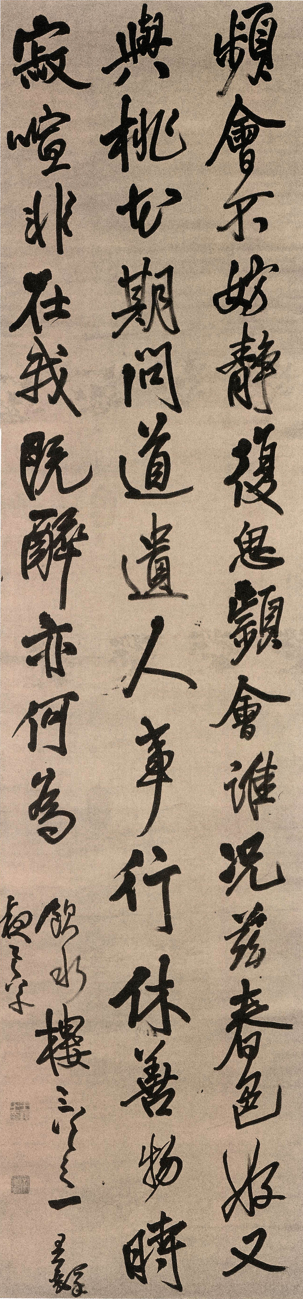 王铎 《饮水楼诗轴》 绫本 208.2×48.7cm 中国国家博物馆藏