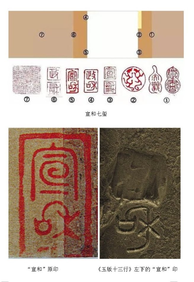 《玉版十三行》末尾有“宣和”印,这个位置在《宝晋斋法帖》中被裁去,加上《宝晋斋法帖》是宋拓孤本,这方印到底是刻帖时就有的,还是后人妄添的呢?
