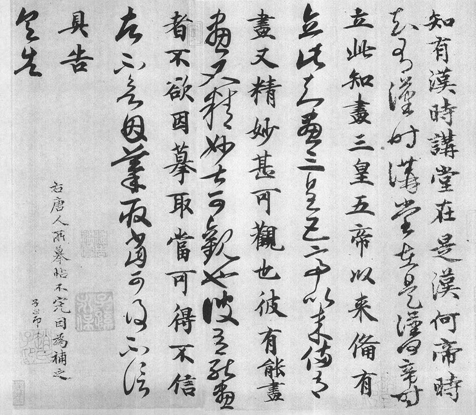 《汉时帖》前二行为唐人写本,后段为元赵孟頫补书。