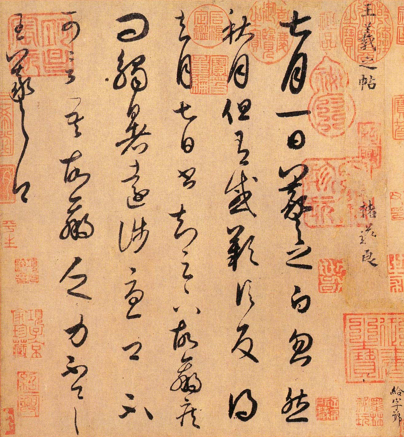 《七月帖》摹本,又称《秋月帖》。与《都下帖》装为一卷(七月都下帖)。麻纸本。纵27.7 厘米,横25.8厘米。6行,50字。台北故宫博物院藏。曾为金章宗、项元汴等藏。