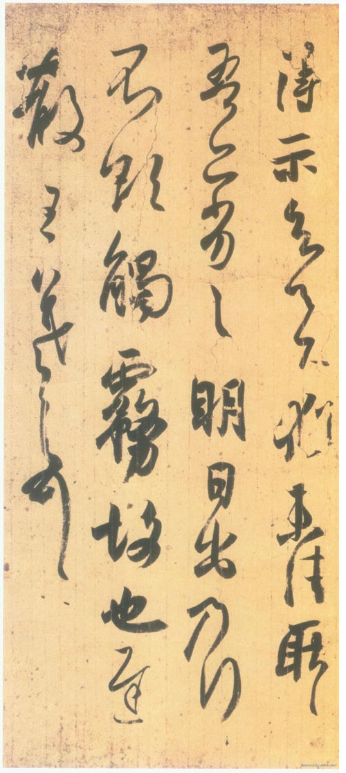 王羲之《得示帖》摹本, 纸本。纵28.7厘米。4行,32字。行草书。日本皇室宫内厅三之丸尚藏馆藏 。此帖与