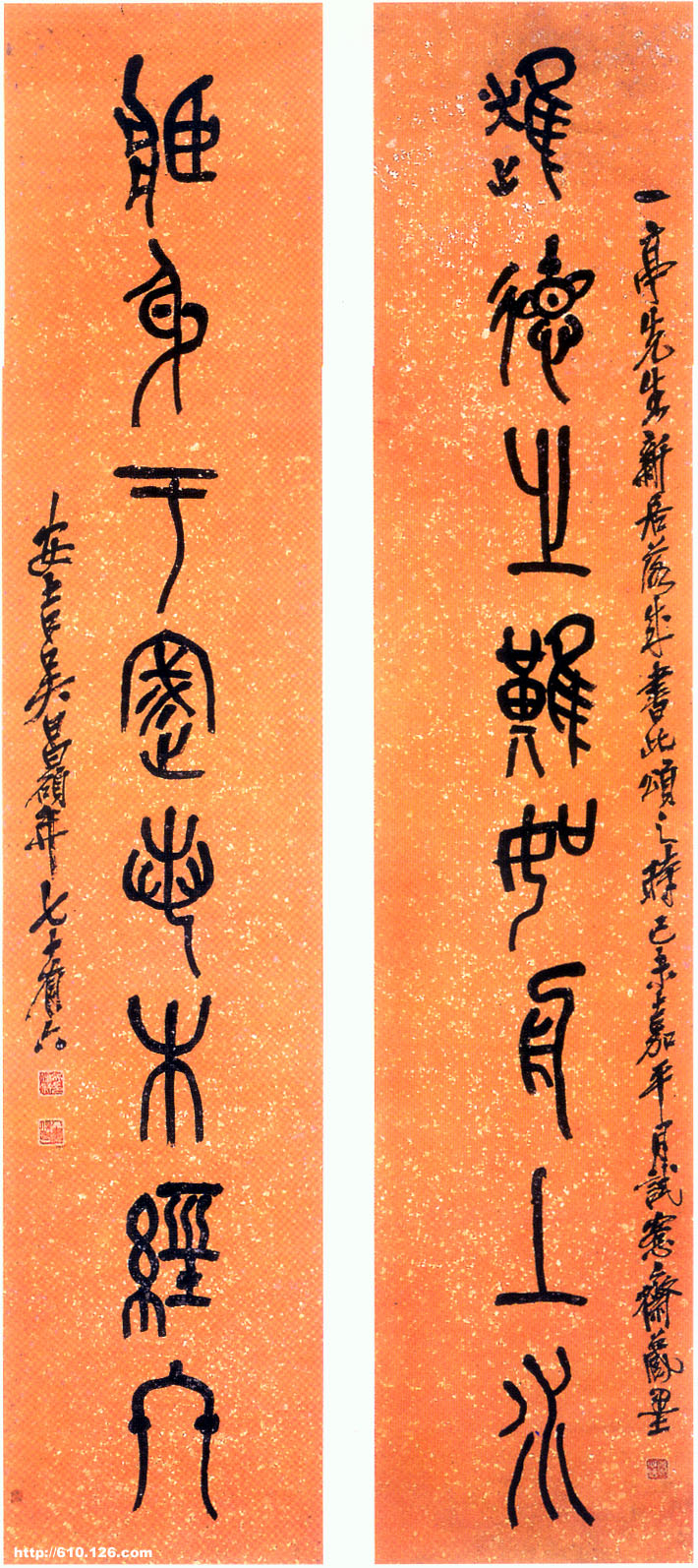 吴昌硕《篆书进德藏身八言联》 1919年 日本味春草堂藏