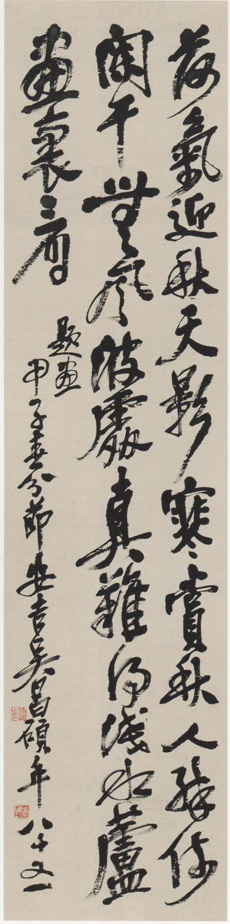 吴昌硕《行书题画轴》纸本行书 136×33.2cm 1924年 天津博物馆藏