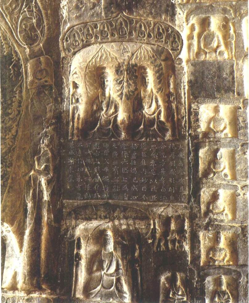 造像记位于大龛右侧,小龛中间,高22厘米,宽46厘米,内容是比丘道匠,造像六区,原"皇道更隆",原与亡故的师僧父母"魂兴神游",同至"大慈与一切众生乐"的西方极乐世界,以求避绝三途恶道。