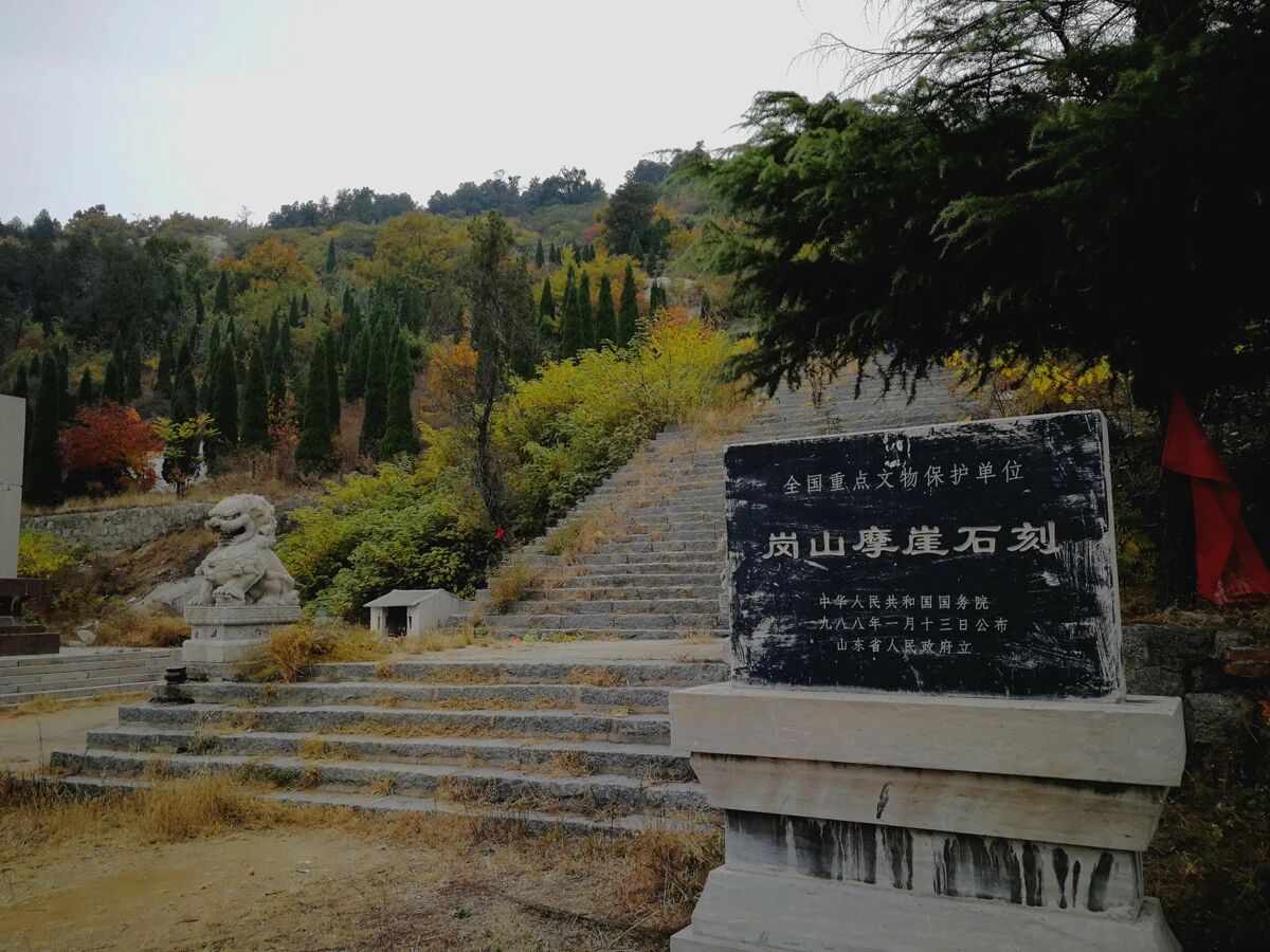 岗山摩崖刻经晚铁山摩崖刻经一年。在此五年前,周武帝为富国强兵,下令“废绝佛、道二教”,焚烧经典,融毁佛像,寺庙充公,大批僧侣还俗。这次长达四年之久的“周武废佛”,使大批僧侣、写经生四处逃亡,或混迹民间,或逃匿山林。邹县为孔孟故乡,社会较为安定,一些僧侣逃匿于此,在此山林刻经、颂佛,期盼着佛教的复兴。所以岗山刻经所处的环境与经文有着密切的关系。