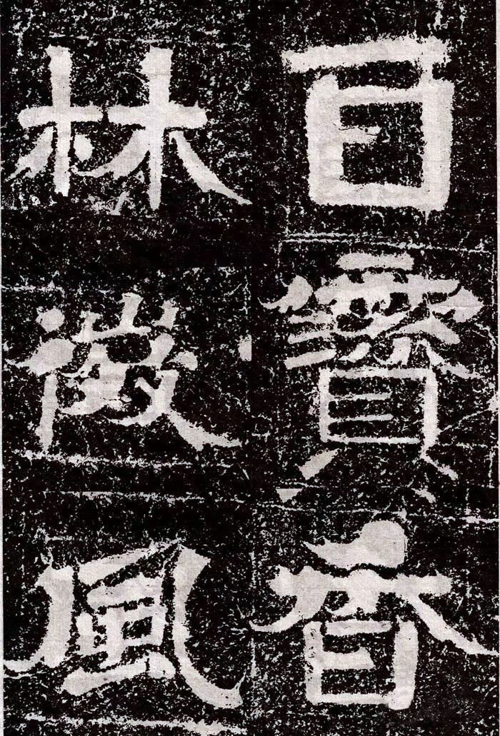 大字《岗山入楞伽经》独具特色,康有为《广艺舟双楫》日:“魏碑大种有三:一日龙门造像,一日云峰刻石,一日冈山、尖山、铁山摩崖,皆数十种同一体者,龙门为方笔之极轨,云峰为圆笔之极轨,二种争盟,可谓极盛。四山摩崖通隶楷、备方圆,高浑简穆,为擘窠之极轨也。”岗山大字佛经皆以隶书结体,用笔上多施楷法,有意识地夸张起笔、收笔处入锋、出锋的效果。点笔皆作圆点,笔画转折处多用断笔,粗犷方峻,稚拙滑稽,乍一看装腔作势,实则是幽默诙谐,别具一番情趣。